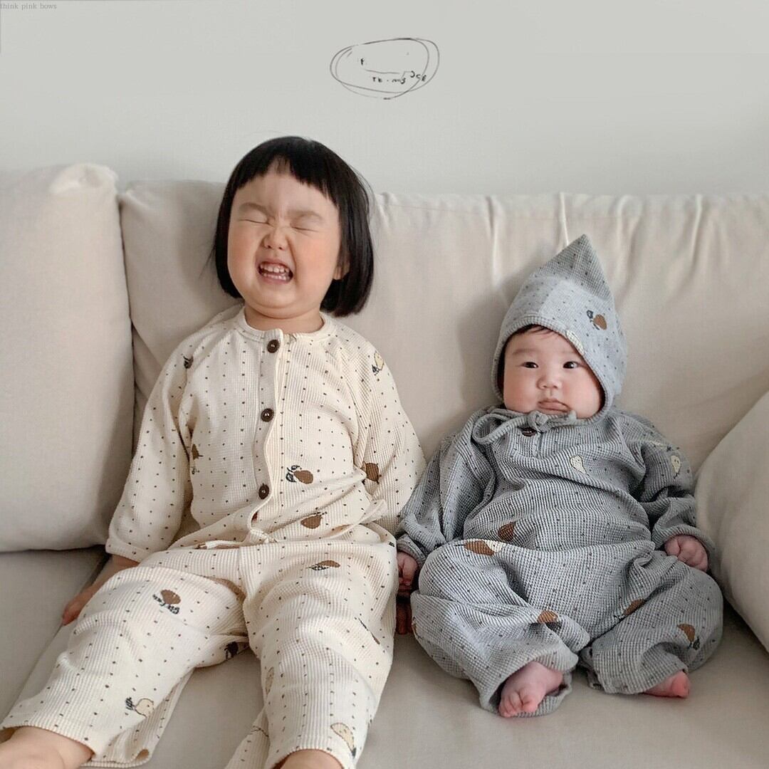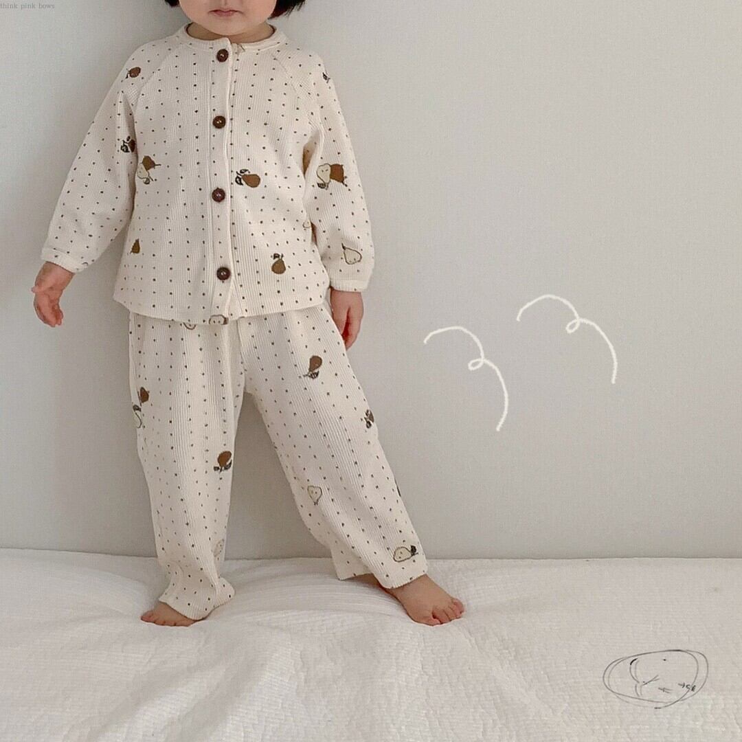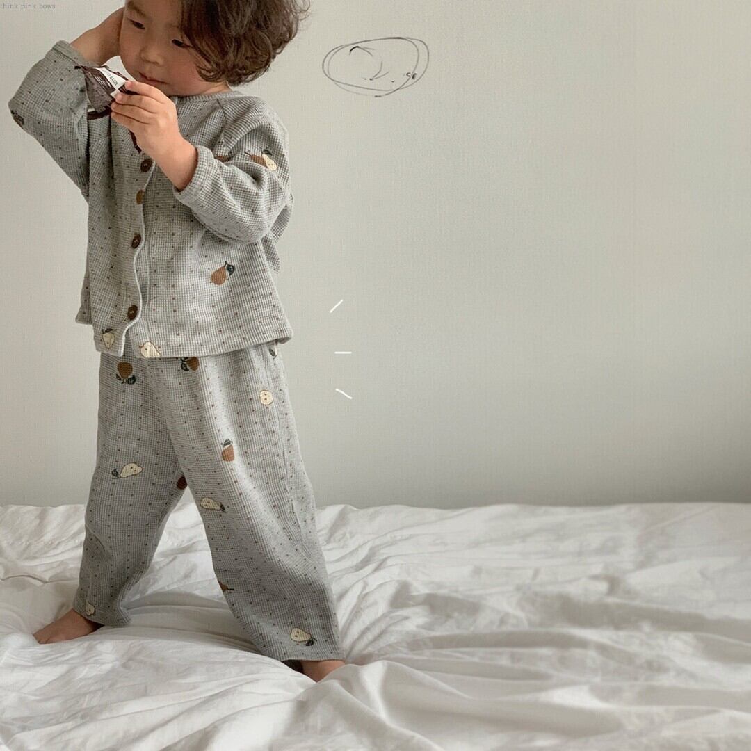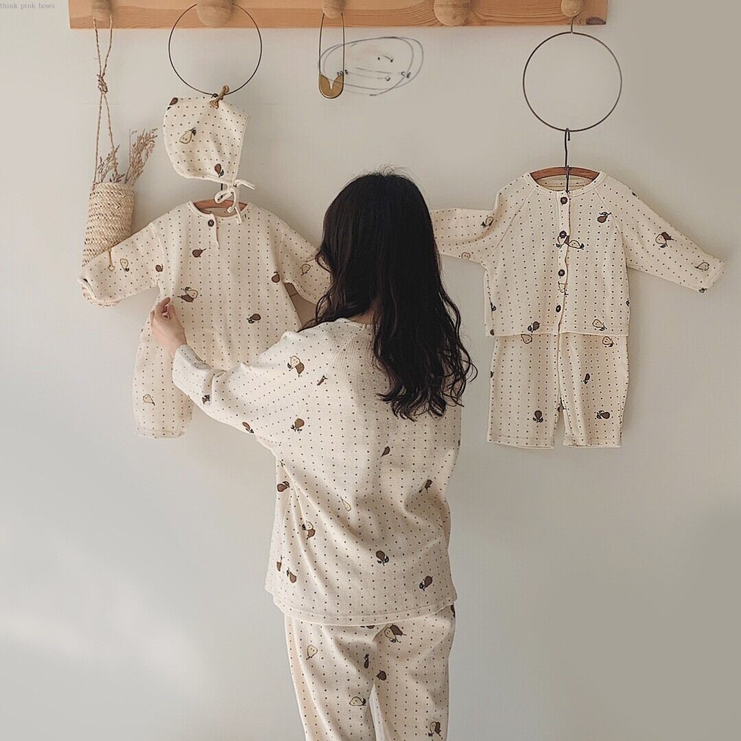 ルームウェア コット素材 兄弟コーデOK ロンパース トップス+パンツ セット販売 66-90㎝ mi095667856135