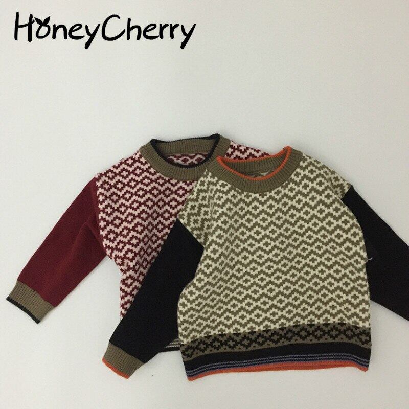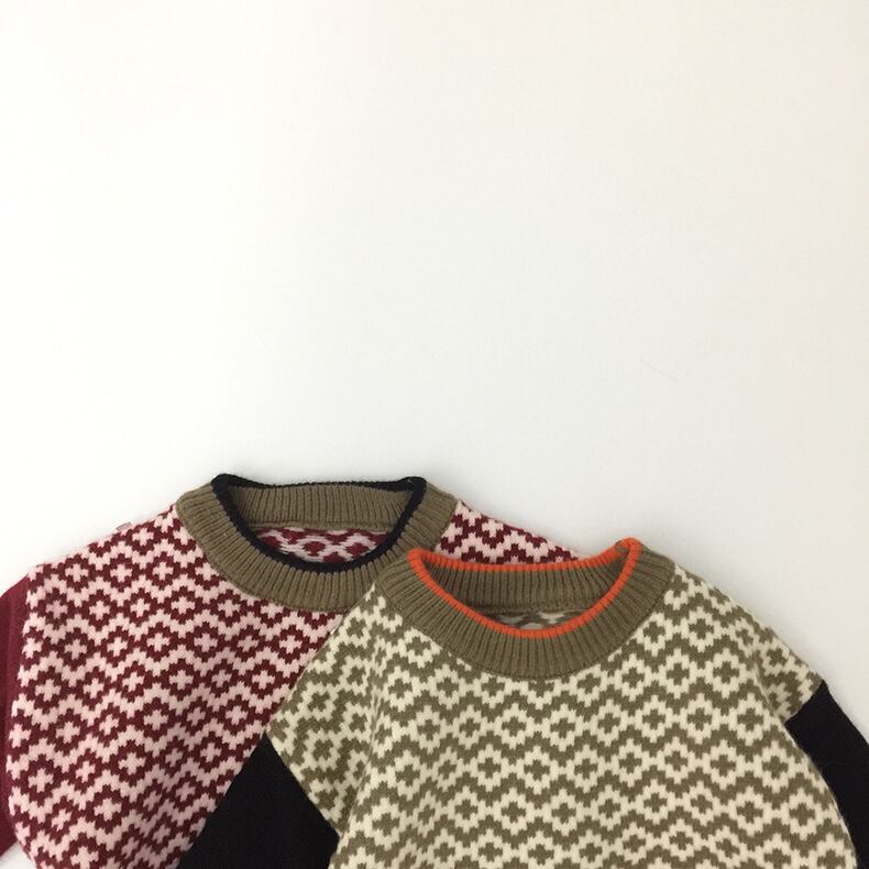 レッドプルオーバー セーター ウィンターラウンドネックストライプ ロング 冬物 Oネック mi0954598367940 | Sagittarius By Constellation -KIDS&BABY-