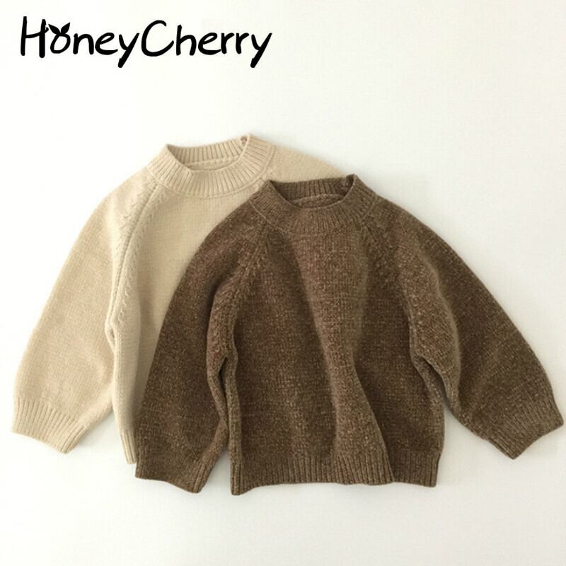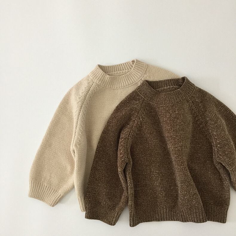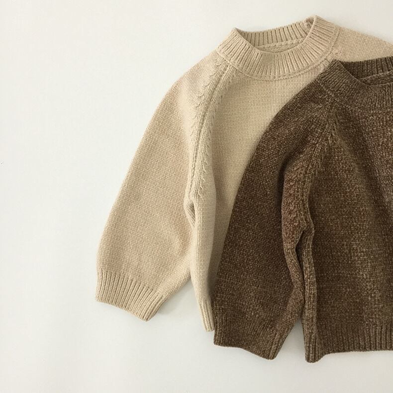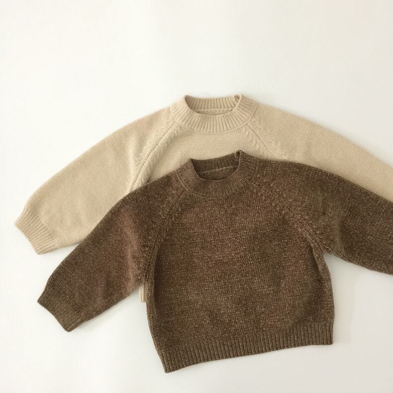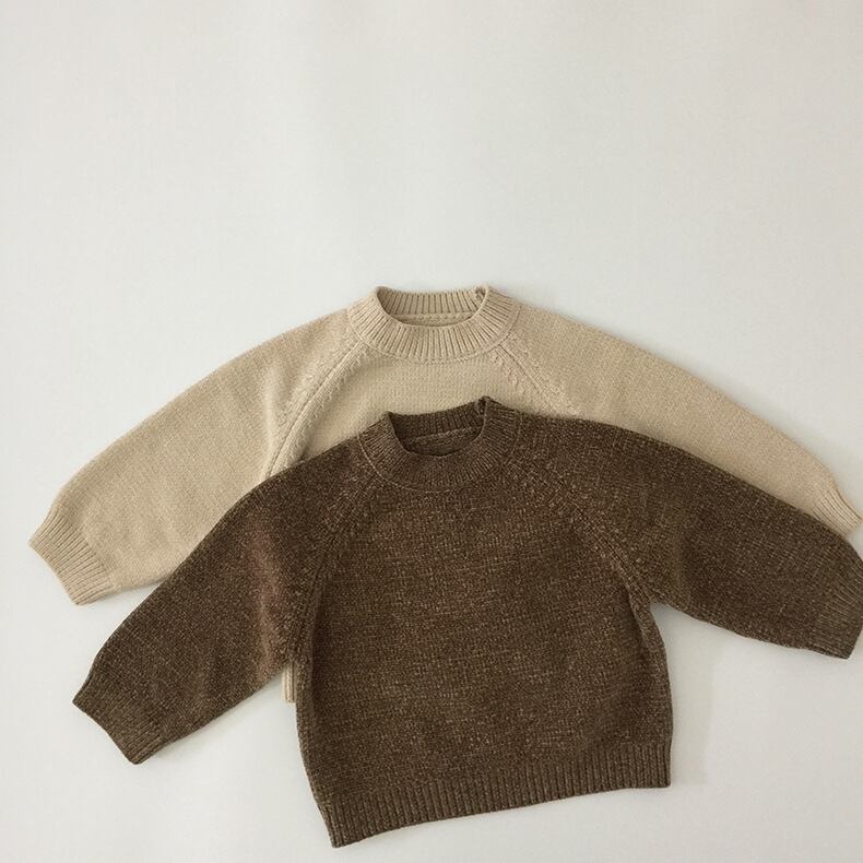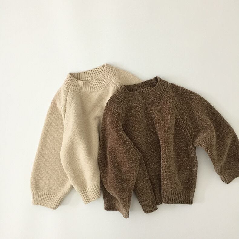 スプリングオータムシャツ ソリッド カラーラウンドネックブラウンプルオーバー セーター 春物 秋物 Oネック ソリッドカラー mi0970706775471 | Sagittarius By Constellation -KIDS&BABY-
