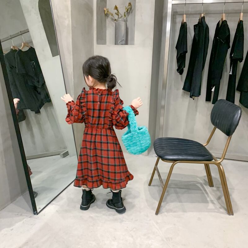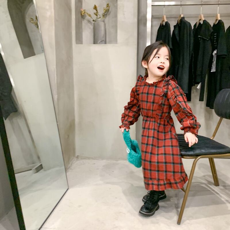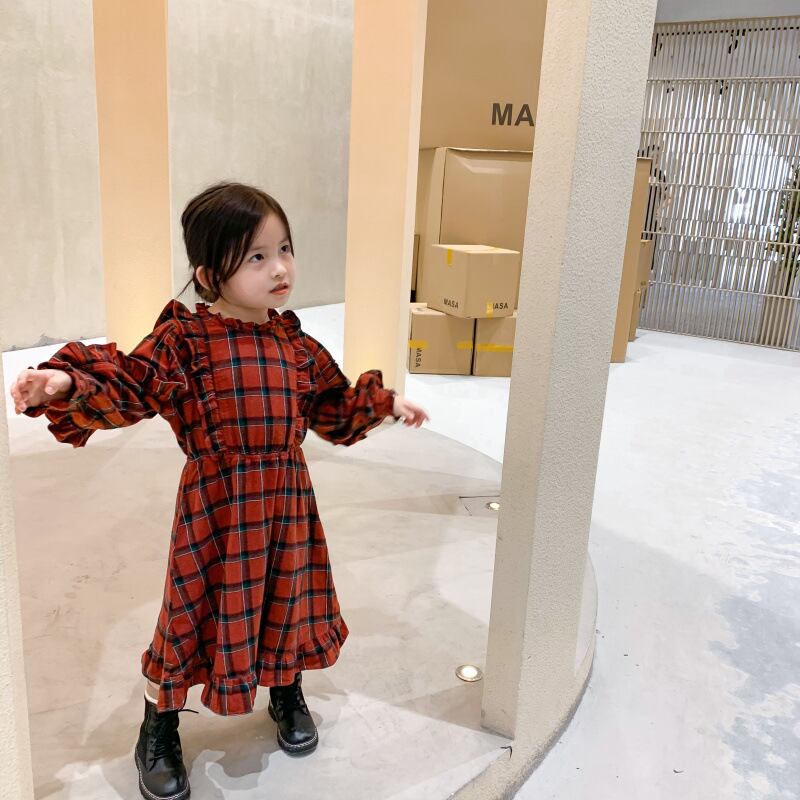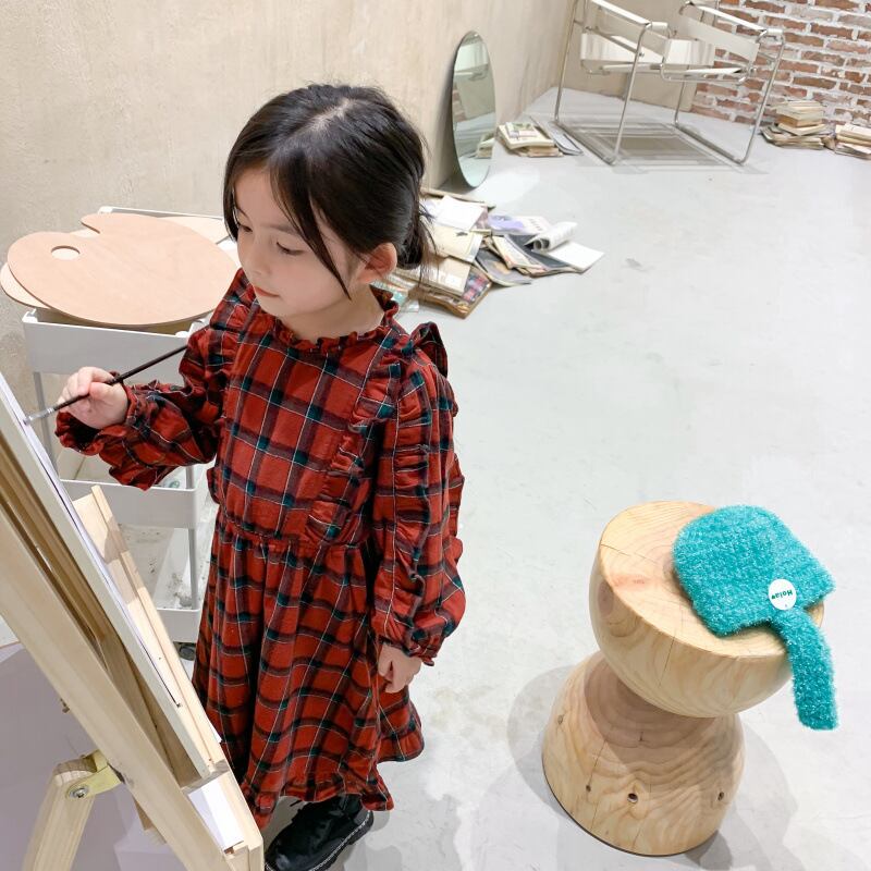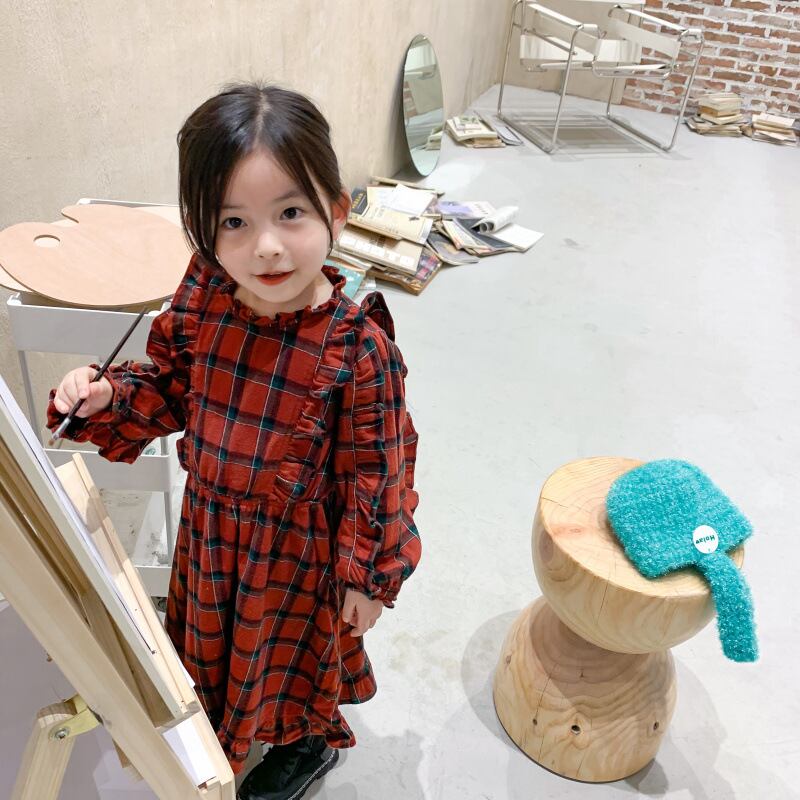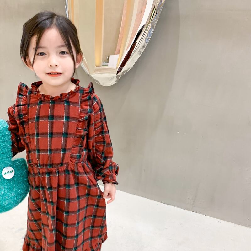 オータムスタンダード格子柄レースドレス Flowerデザイン ドレス ワンピース ロング レトロ 大人ガーリー スウィート キュート カジュアル 秋物 フラワーデザイン mi0932488205300 | Sagittarius By Constellation -KIDS&BABY-
