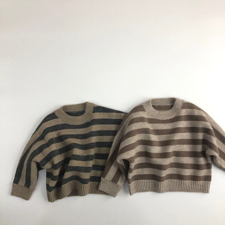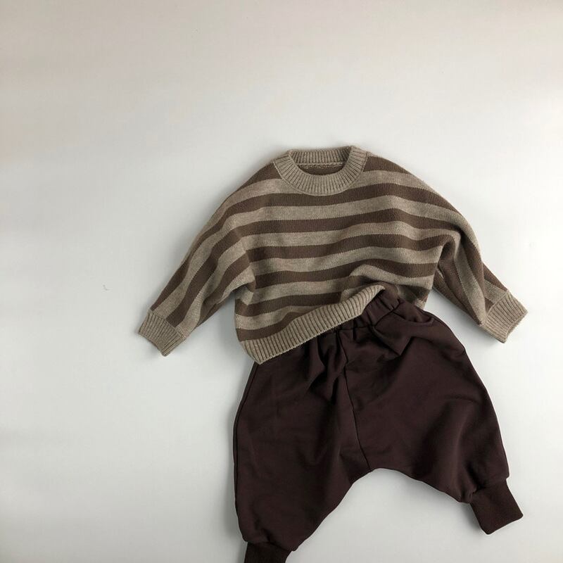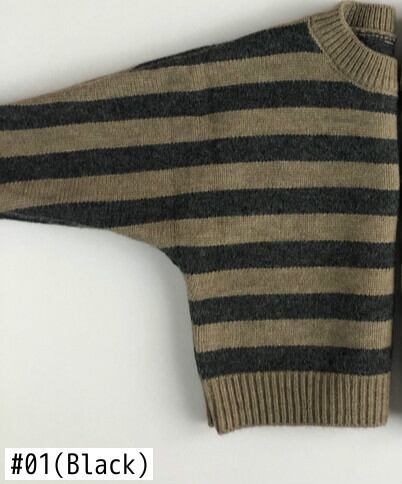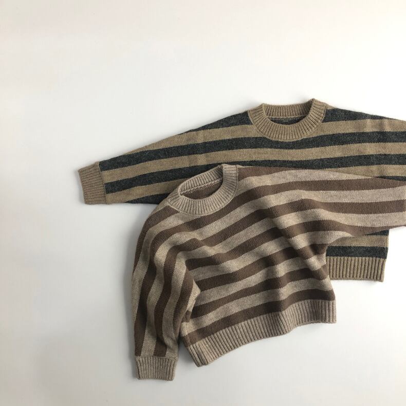セーター オータムプルオーバー 長袖スリーブラウンドネックストライプブラウン ロング 秋物 Oネック mi0931153287165 | Sagittarius By Constellation -KIDS&BABY-