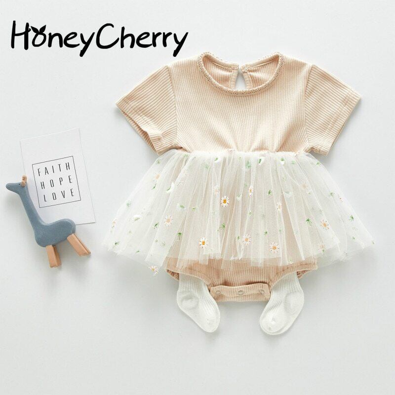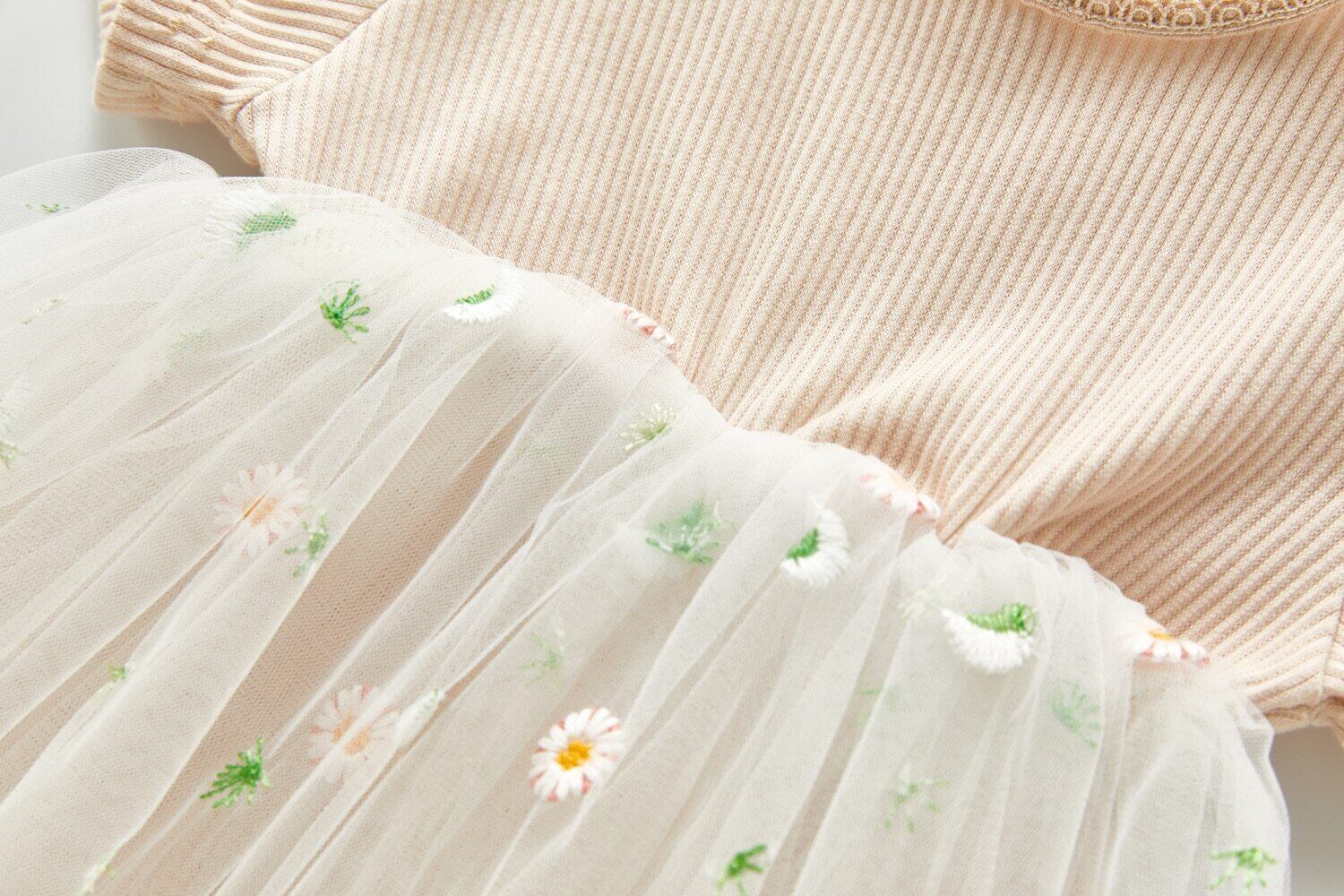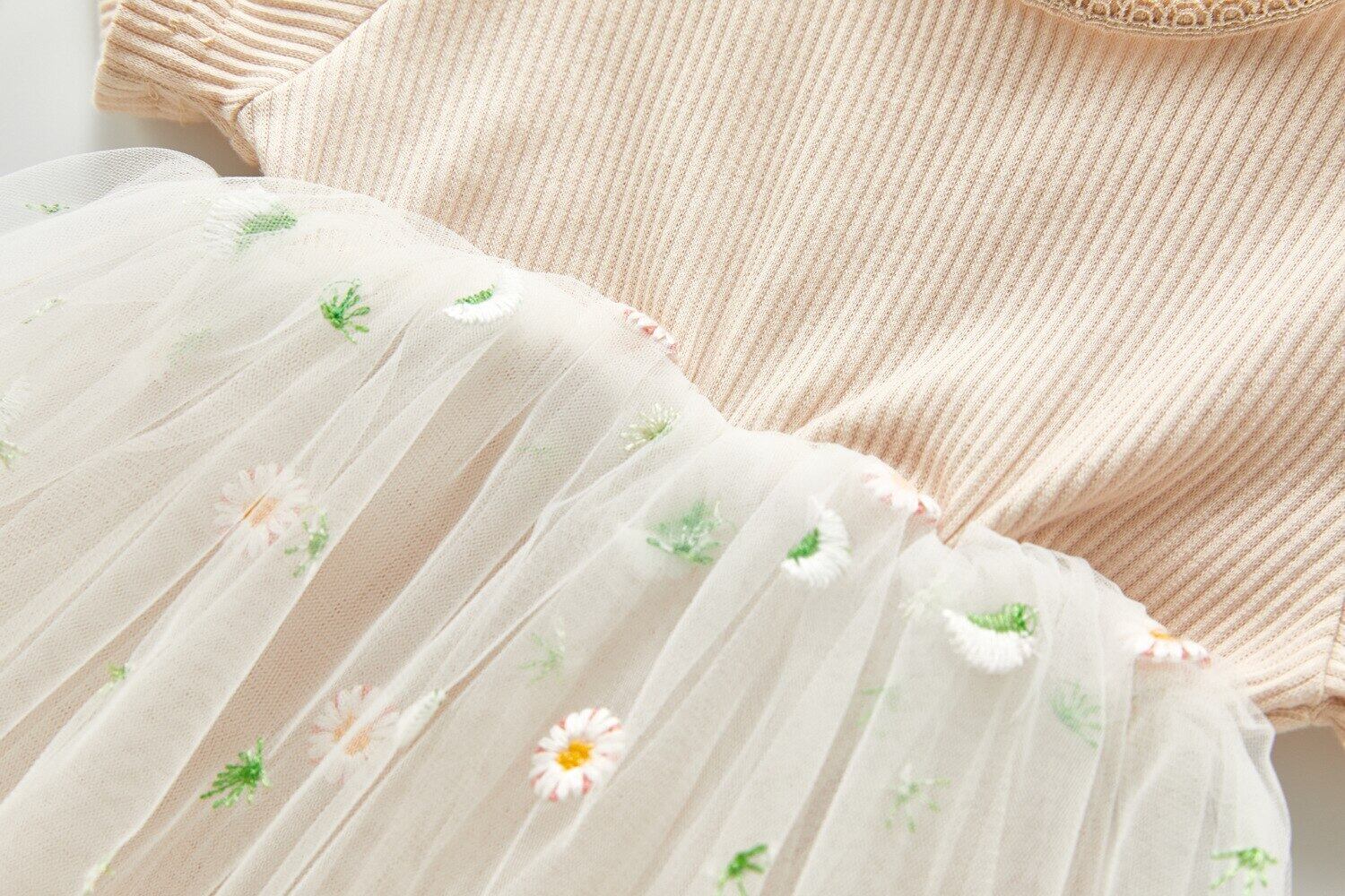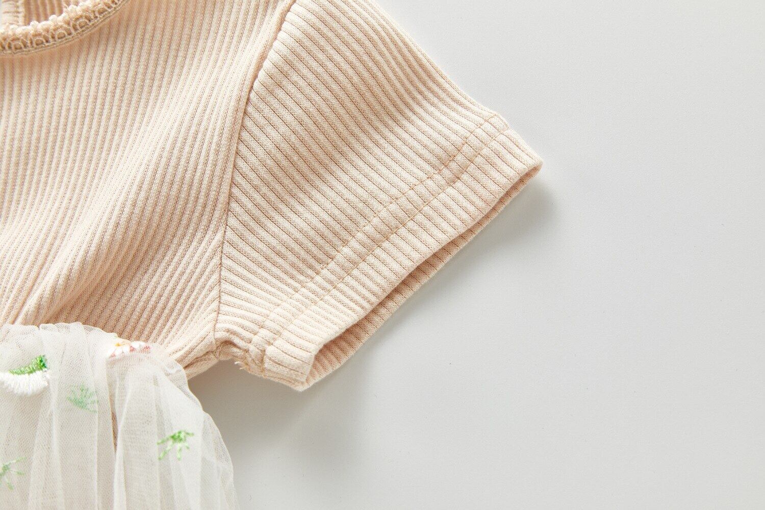 サマー半袖スリーブホルタースカート Flowerデザイン メッシュ ショート ハーフスリーブ 夏物 フラワーデザイン mi0925184068905 | Sagittarius By Constellation -KIDS&BABY-