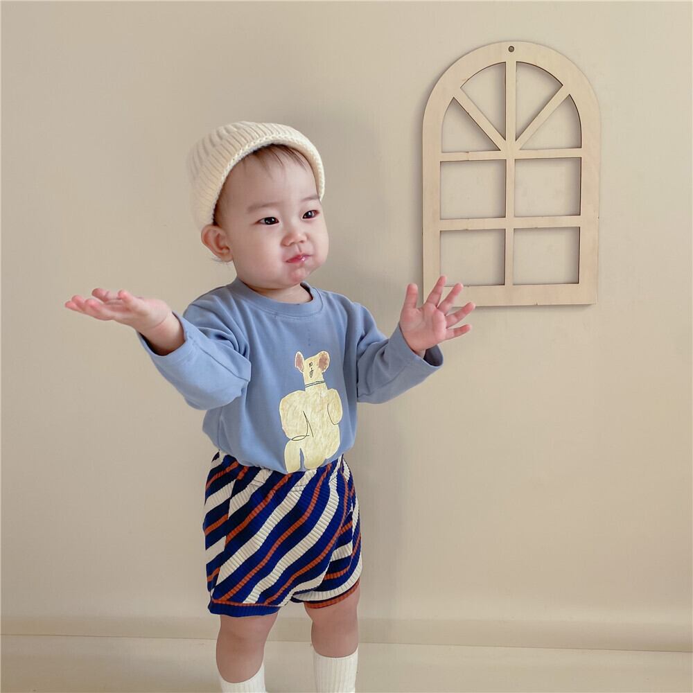 スプリングプリントルーズカジュアルストライプTシャツ ショーツ セット 帽子 春物 ブルマー mi0950763819973 | Sagittarius By Constellation -KIDS&BABY-