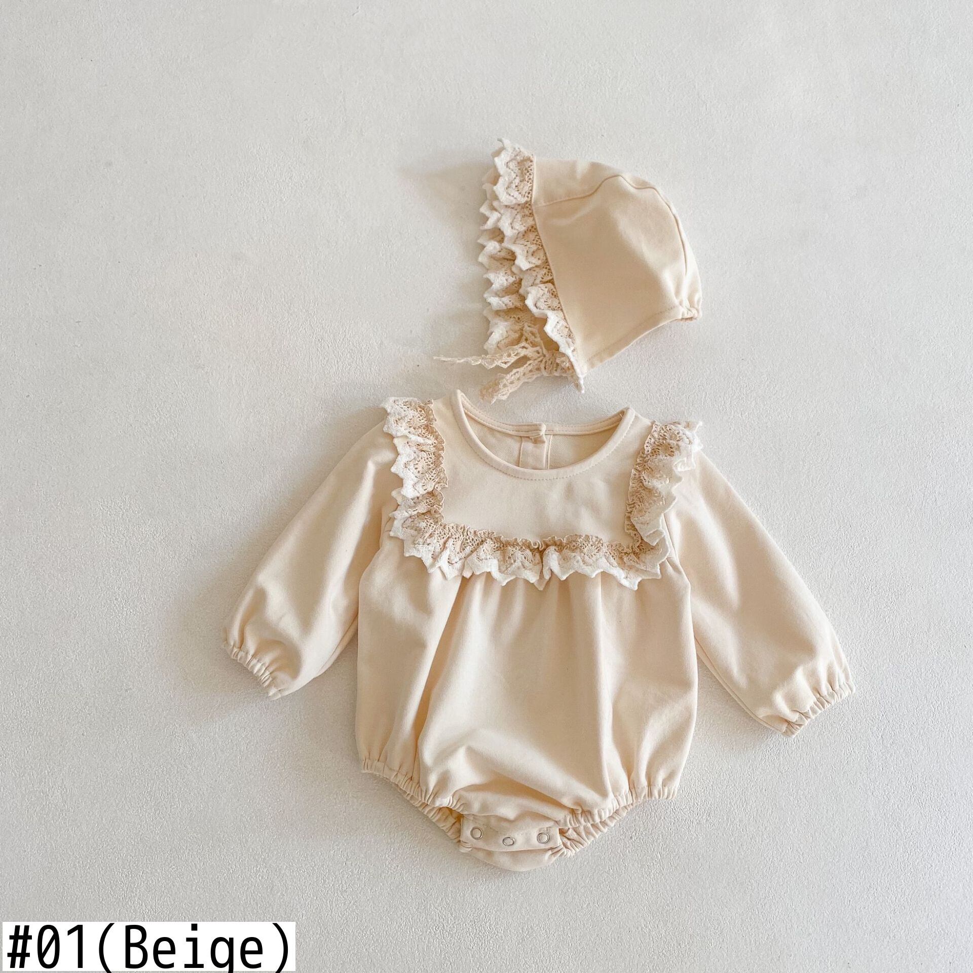 スプリングロンパース オールインワン レース長袖スリーブトライアングルキャップ ロング 春物 mi0917702446415 | Sagittarius By Constellation -KIDS&BABY-