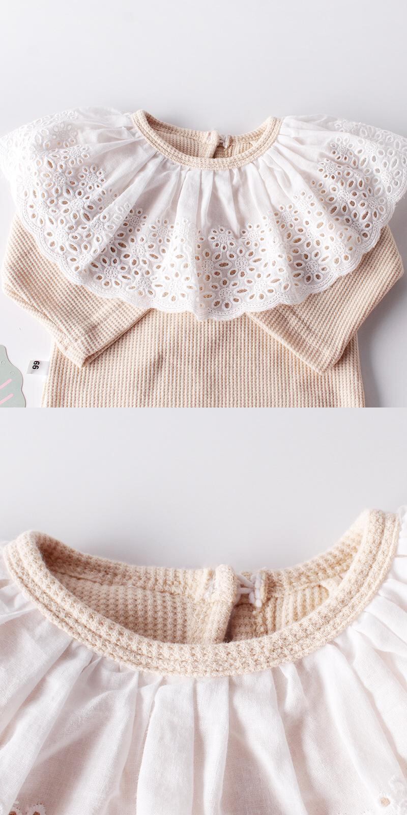 レース長袖スリーブジャンプスーツ オールインワン ロング コットン 帽子 ドレス ピュア mi0996979746396 | Sagittarius By Constellation -KIDS&BABY-