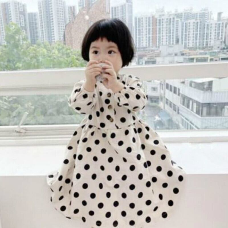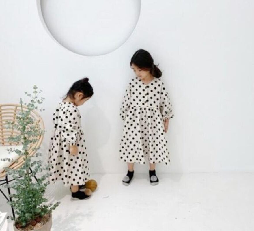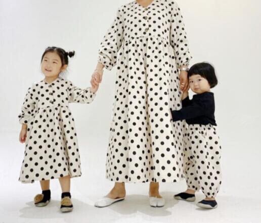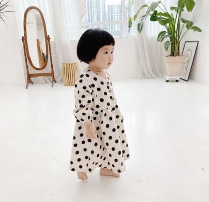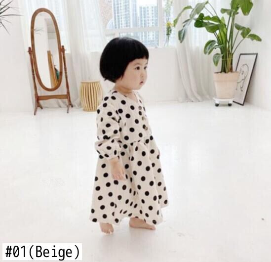 スプリング水玉カジュアル長袖スリーブドレス Flowerデザイン ドレス ワンピース ロング コットン 春物 フラワーデザイン mi0987624541089 | Sagittarius By Constellation -KIDS&BABY-