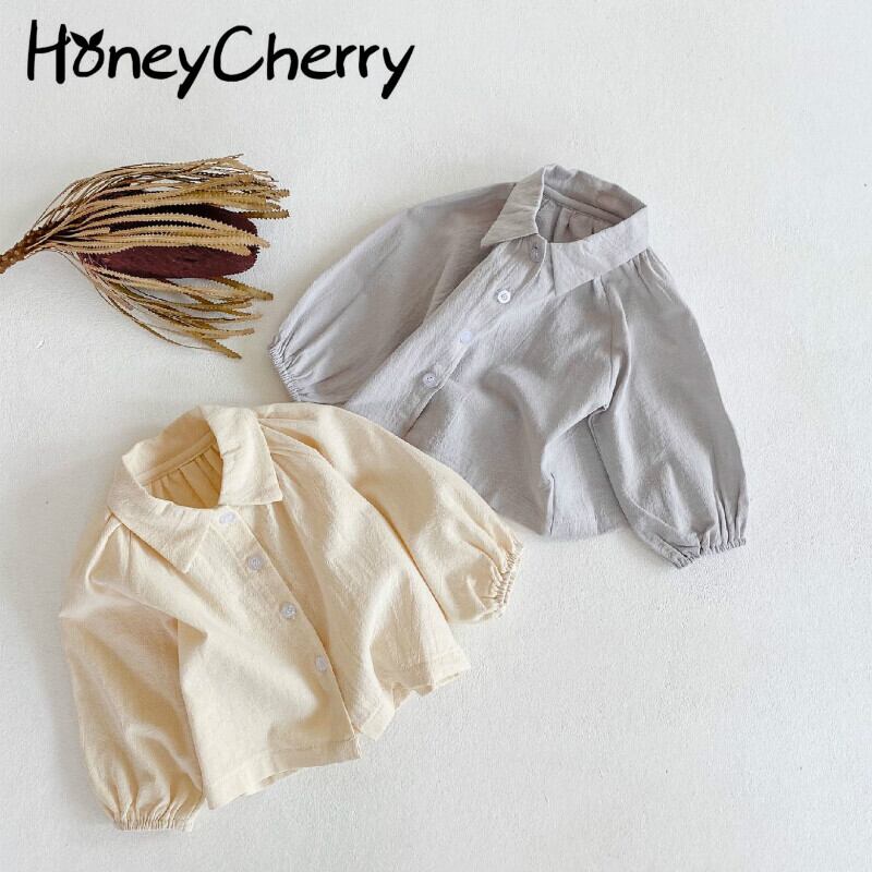 スプリングカラーソリッド ルーズシャツ ブラウス ロング コットン 春物 ソリッドカラー mi0998798602049 | Sagittarius By Constellation -KIDS&BABY-