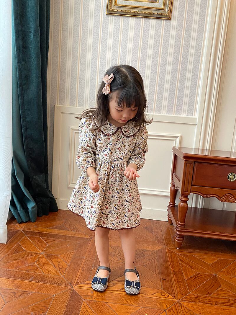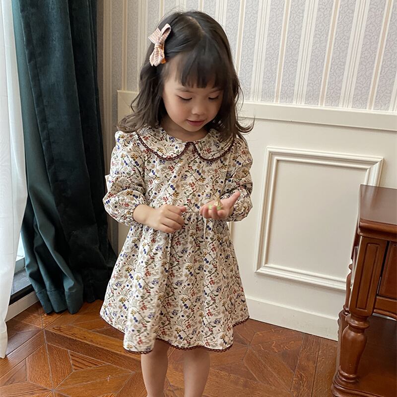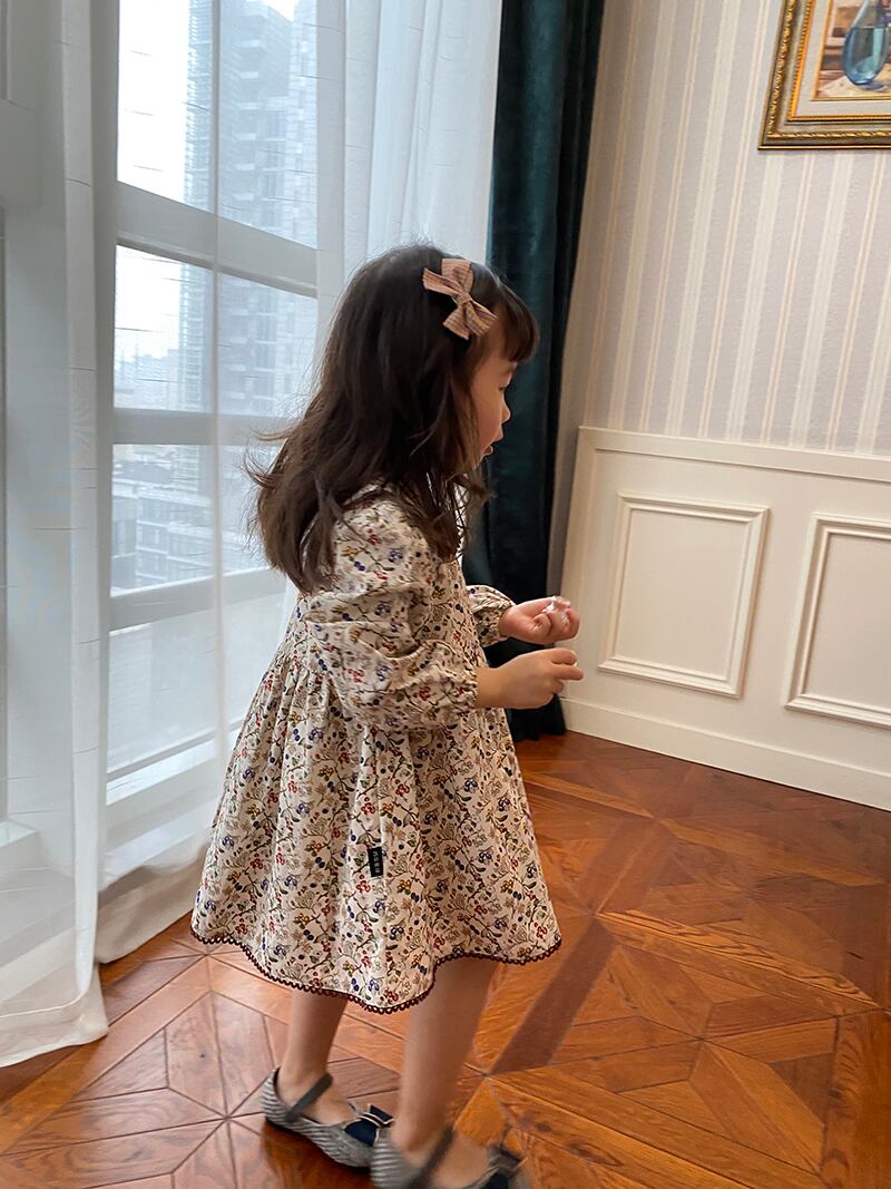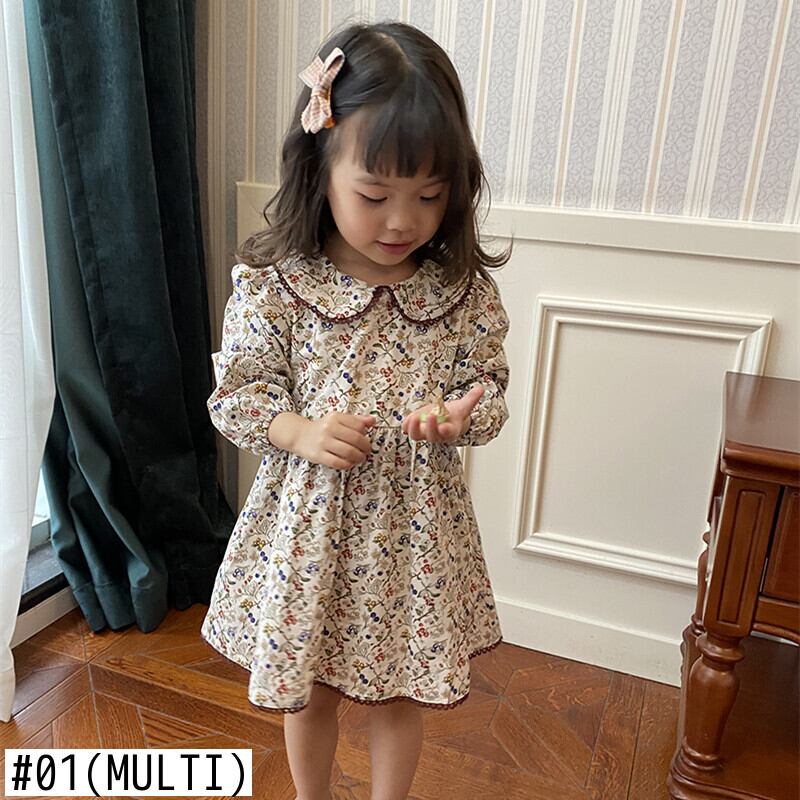 フローラルスプリングオータムカラードレス スタイルスタンダードFlowerデザイン ドレス ワンピース レトロ 春物 秋物 花柄 フラワーデザイン mi0970073883060 | Sagittarius By Constellation -KIDS&BABY-