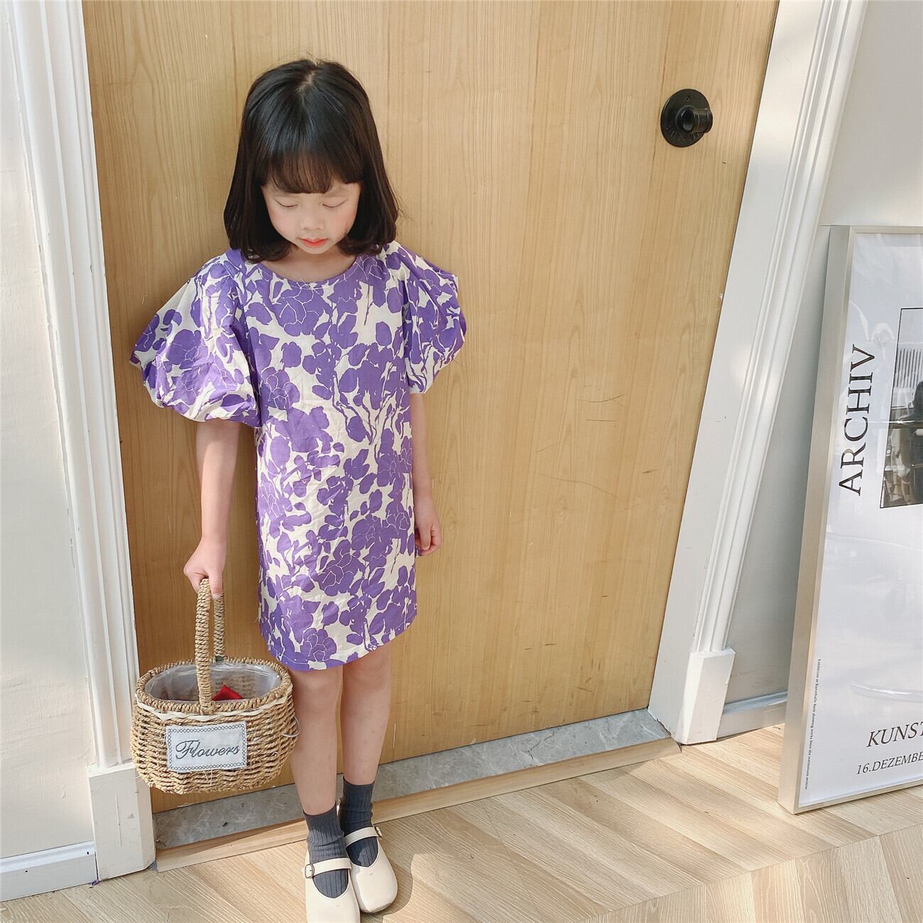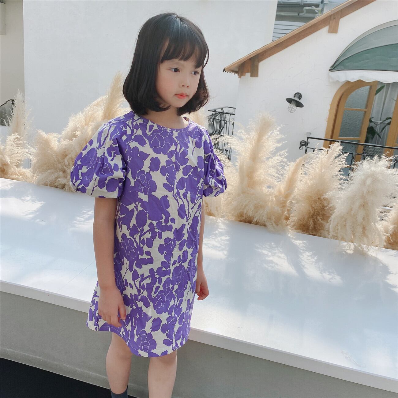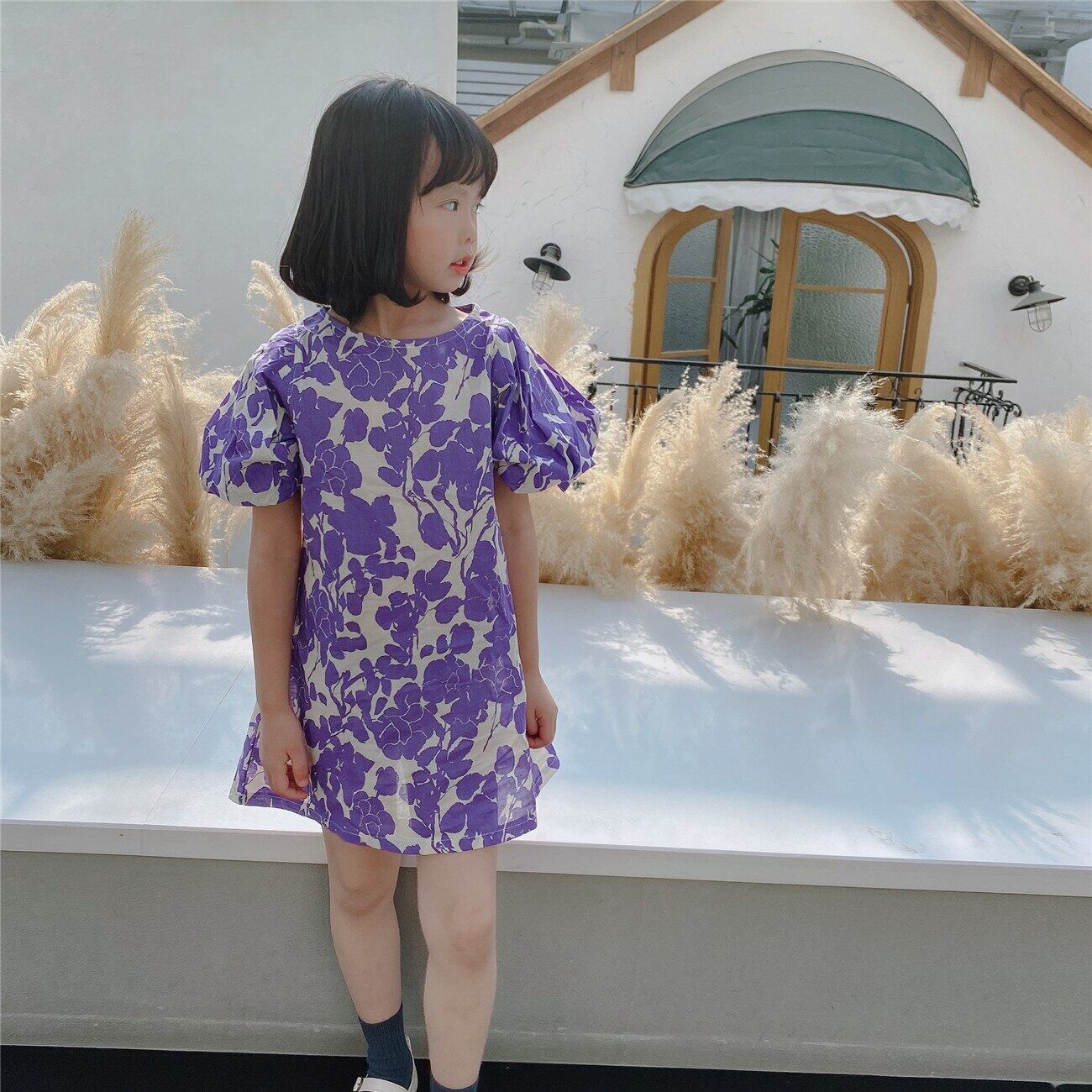 スプリングサマードレス Flowerデザイン 春物 夏物 フラワーデザイン パープル mi0953094410234 | Sagittarius By Constellation -KIDS&BABY-