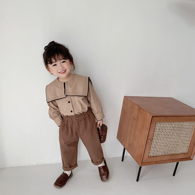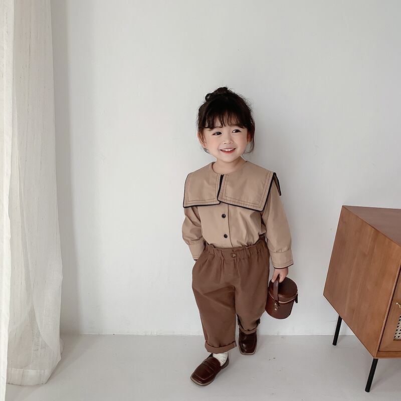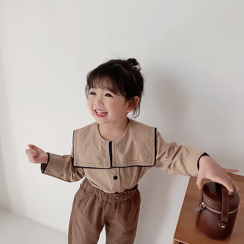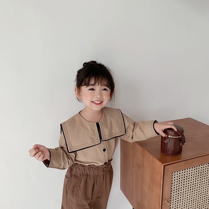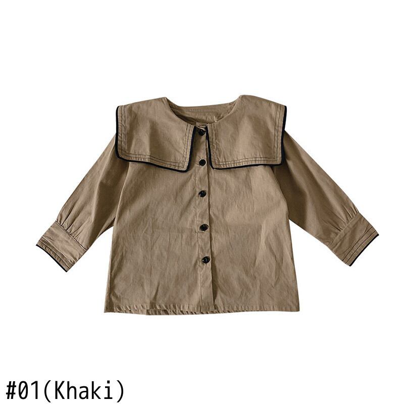 スプリングスタンダードシャツ ネイビーカラーシャツ ロング コットン レトロ 春物 キッズ mi0965282277995 | Sagittarius By Constellation -KIDS&BABY-
