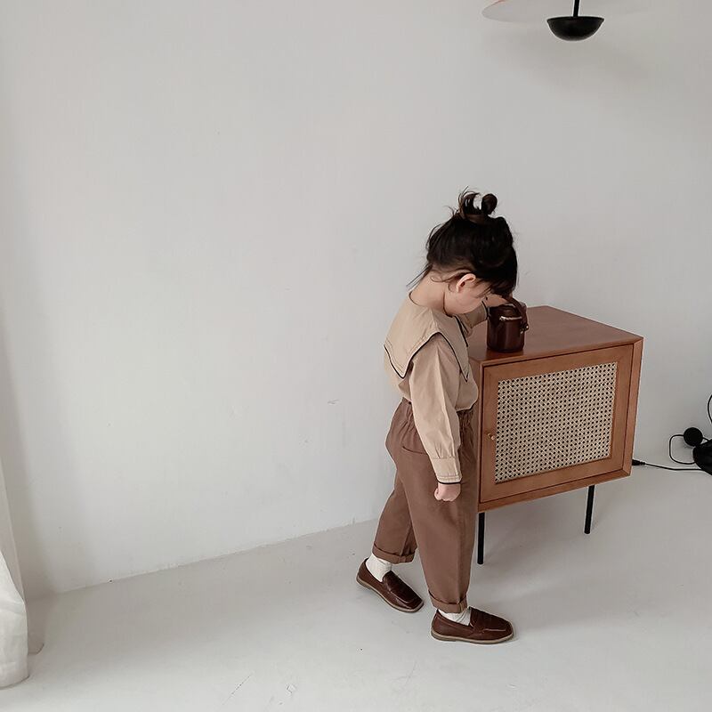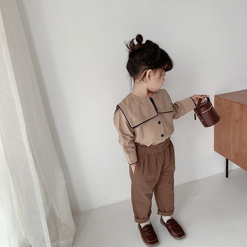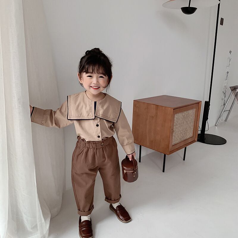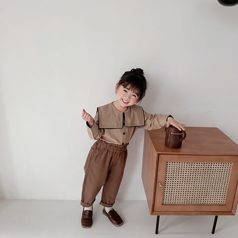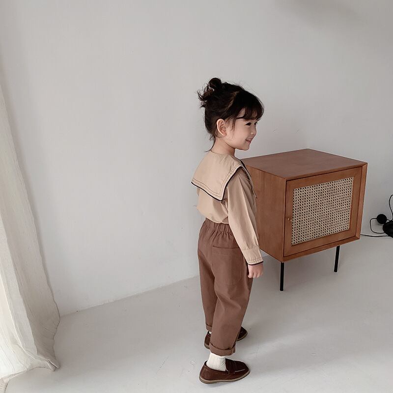 スプリングスタンダードシャツ ネイビーカラーシャツ ロング コットン レトロ 春物 キッズ mi0965282277995 | Sagittarius By Constellation -KIDS&BABY-