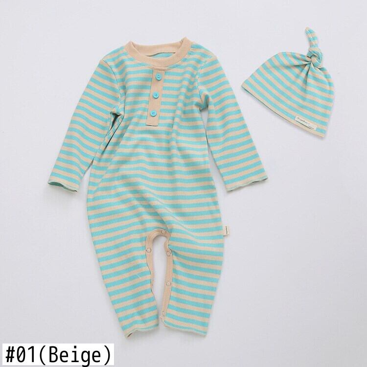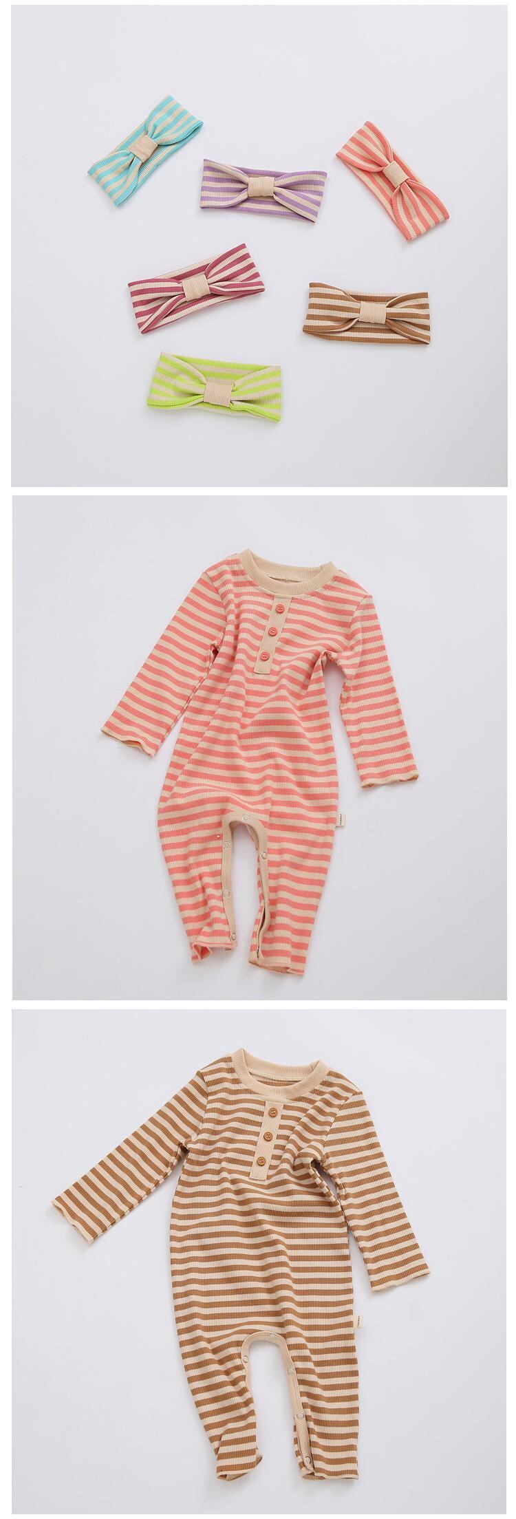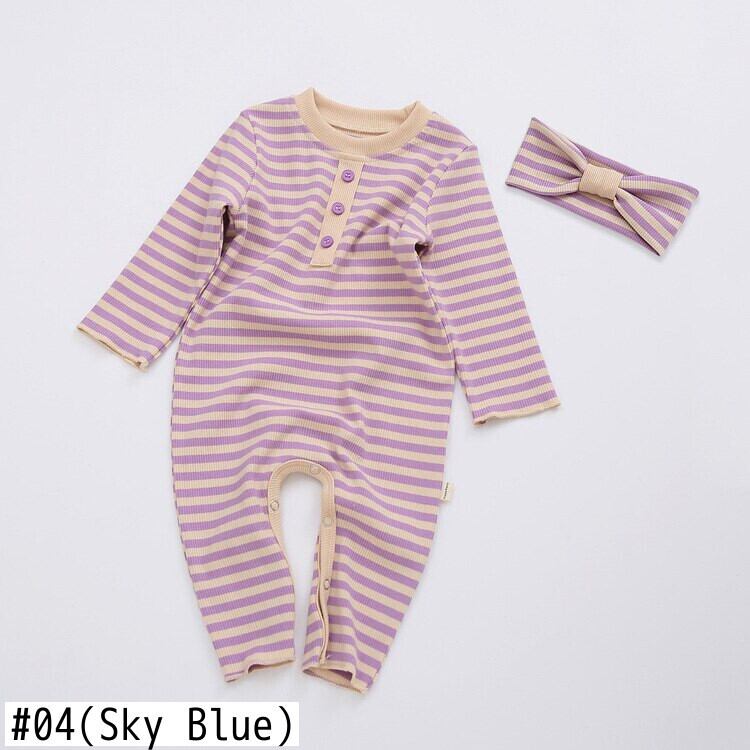 スプリングルーズストライプロンパース オールインワン ヘアバンド 春物 ヘアアクセサリー mi0992822794111 | Sagittarius By Constellation -KIDS&BABY-
