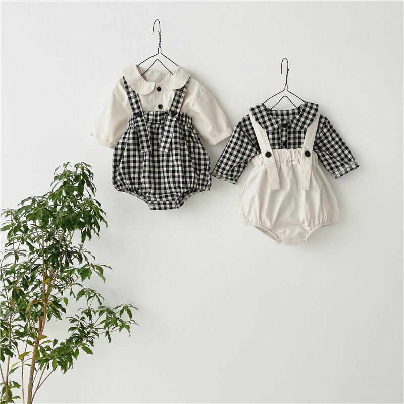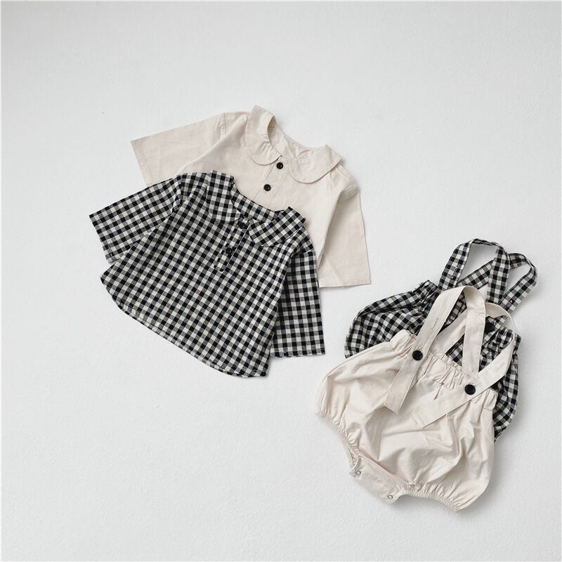 色:ベージュトップ+チェック柄パンツ,チェック柄トップ+ライスパンツ