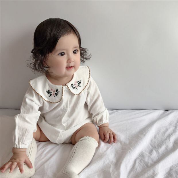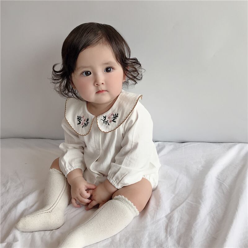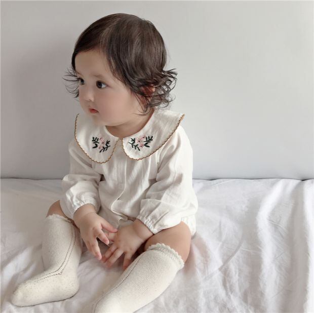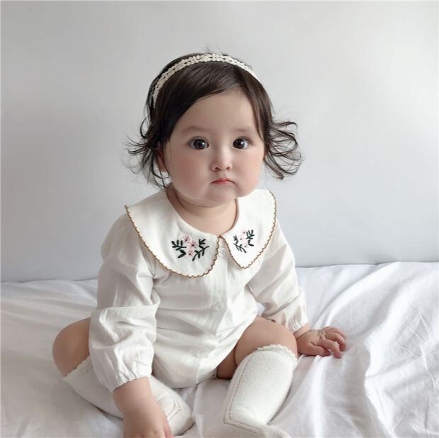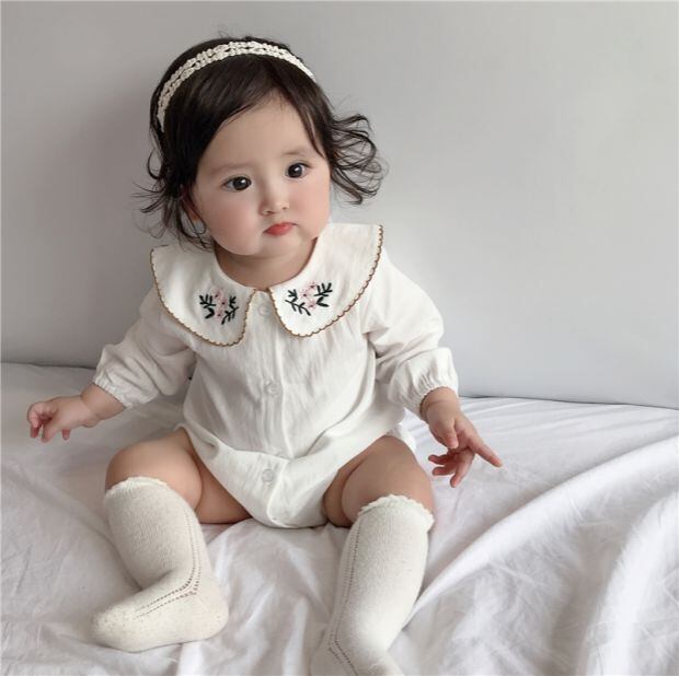 色:白い,ホワイトロンパース+ベージュソックス+フラワーヘッドバンド