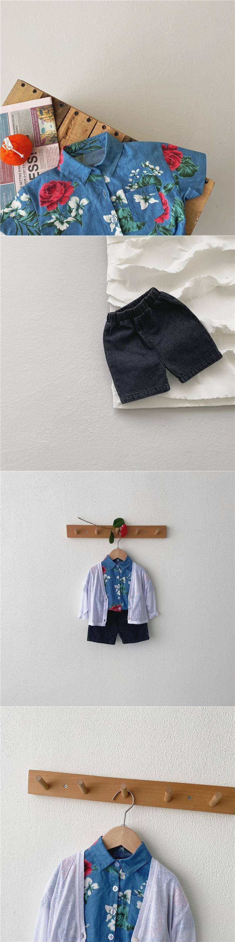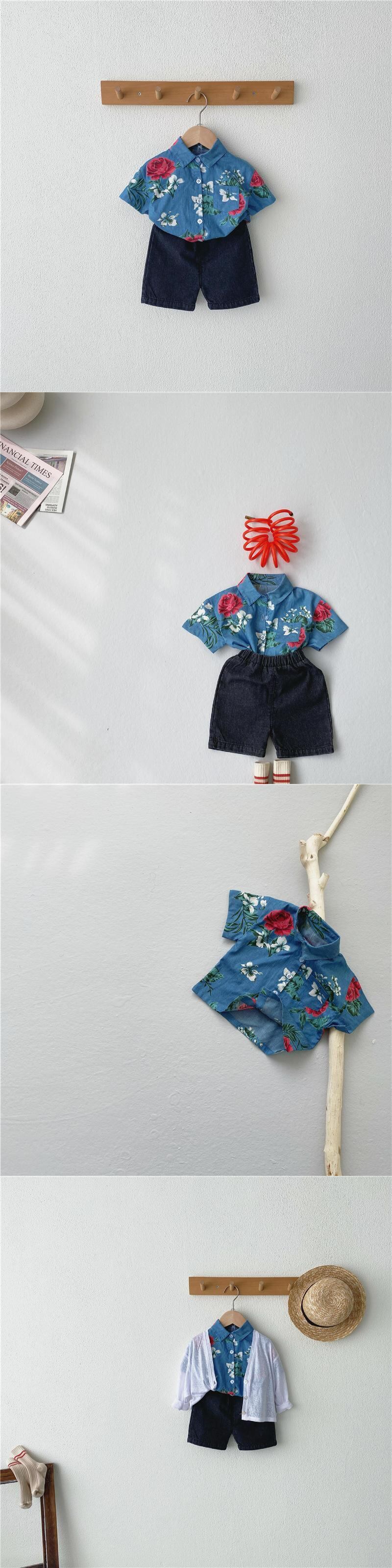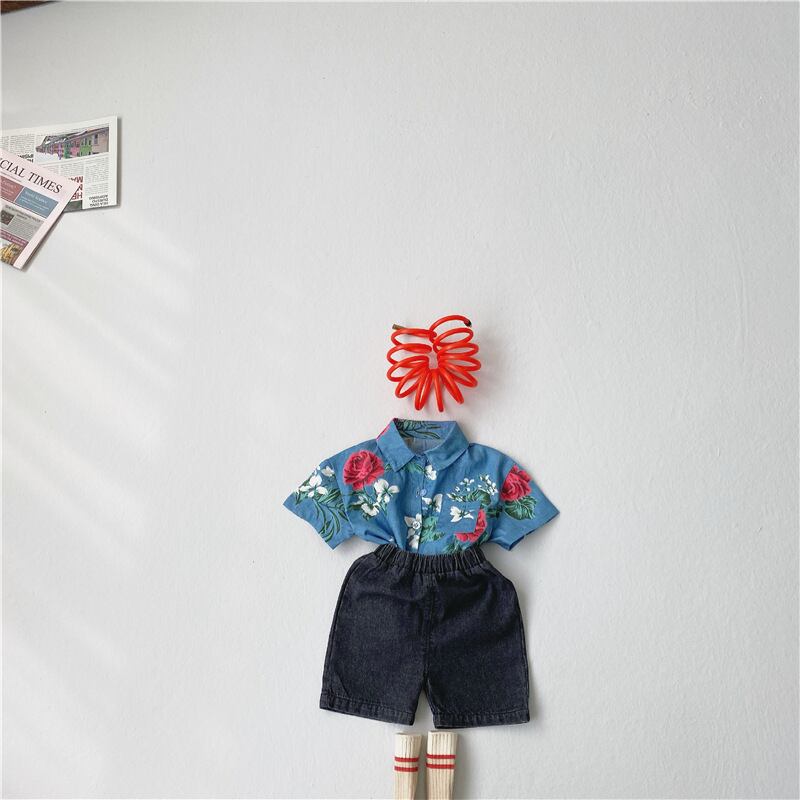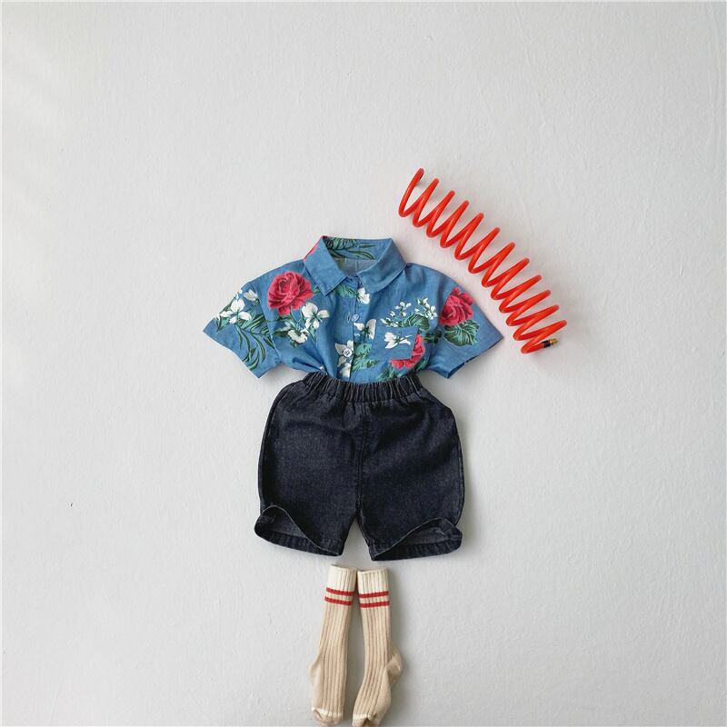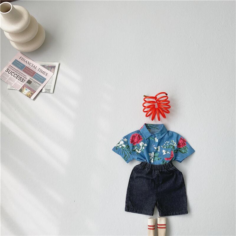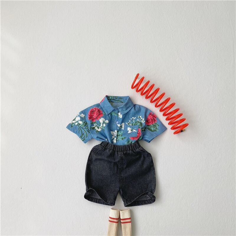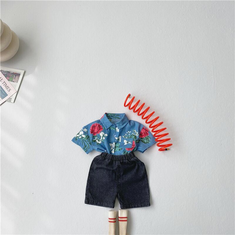 サマースタンダードスタイルフローラルシャツ ショーツ セット レトロ 夏物 ブルマー 花柄 mi0968366206254 | Sagittarius By Constellation -KIDS&BABY-