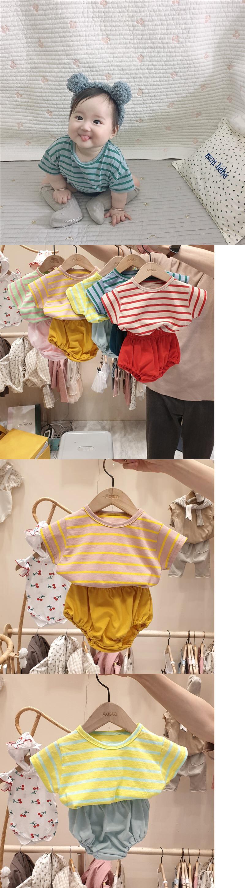スプリングサマーストライプカジュアルルーズTシャツ ショーツ 春物 夏物 ブルマー mi0985583456723 | Sagittarius By Constellation -KIDS&BABY-