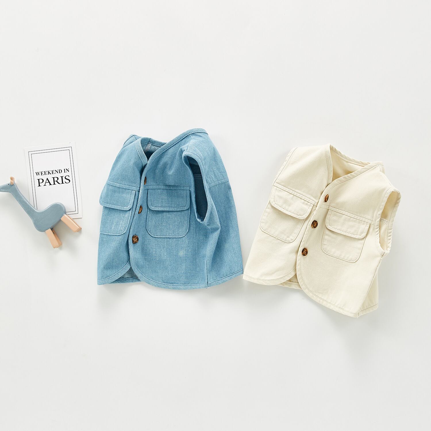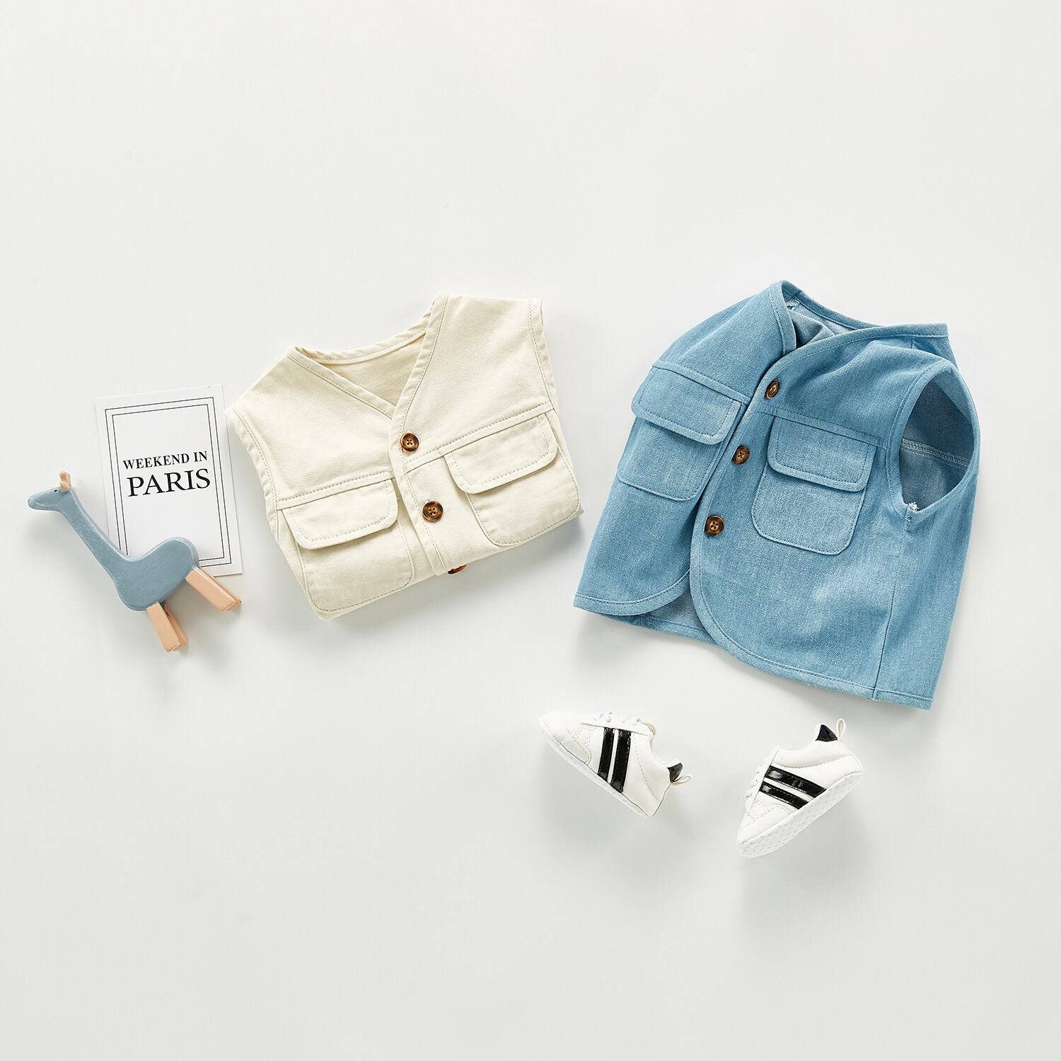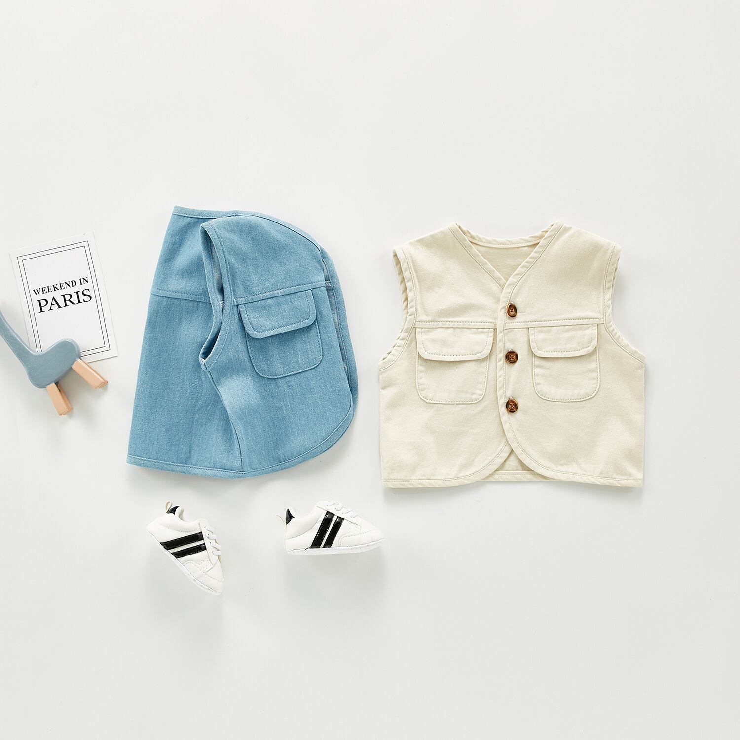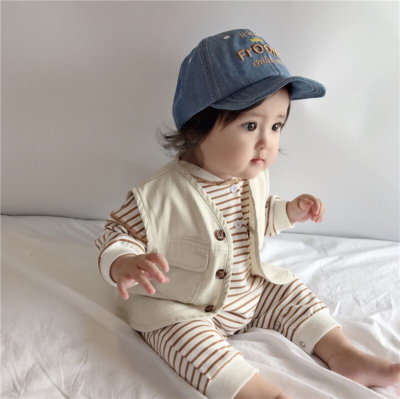 色:青,アプリコット,ブルーのベスト+白とグレーのストライプのロングクライミング,アプリコットベスト+ホワイトシーストライプロングクライミング