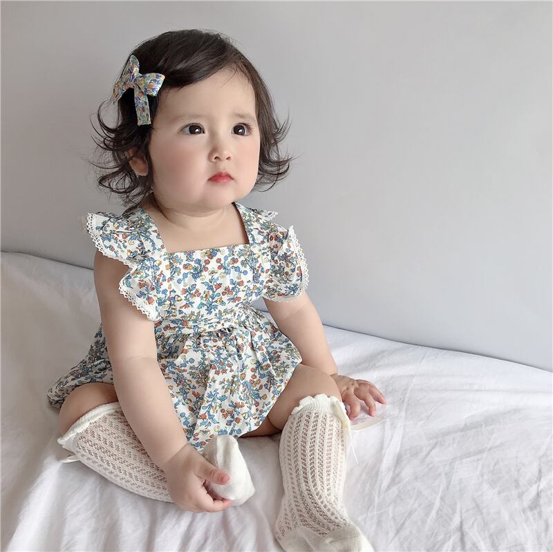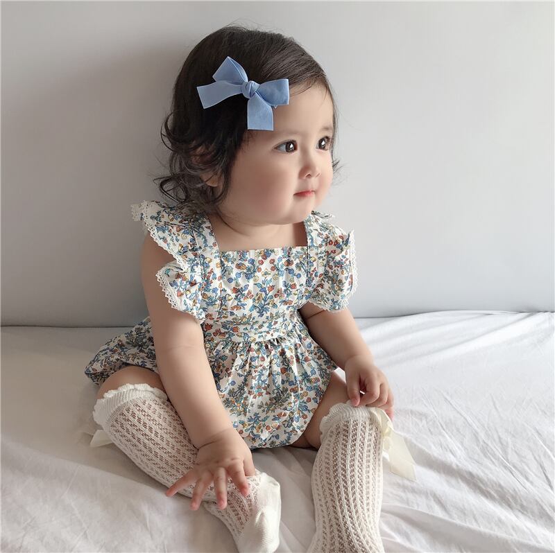 色:青,青いドレス+ヘアピン(青+花柄)+白い靴下