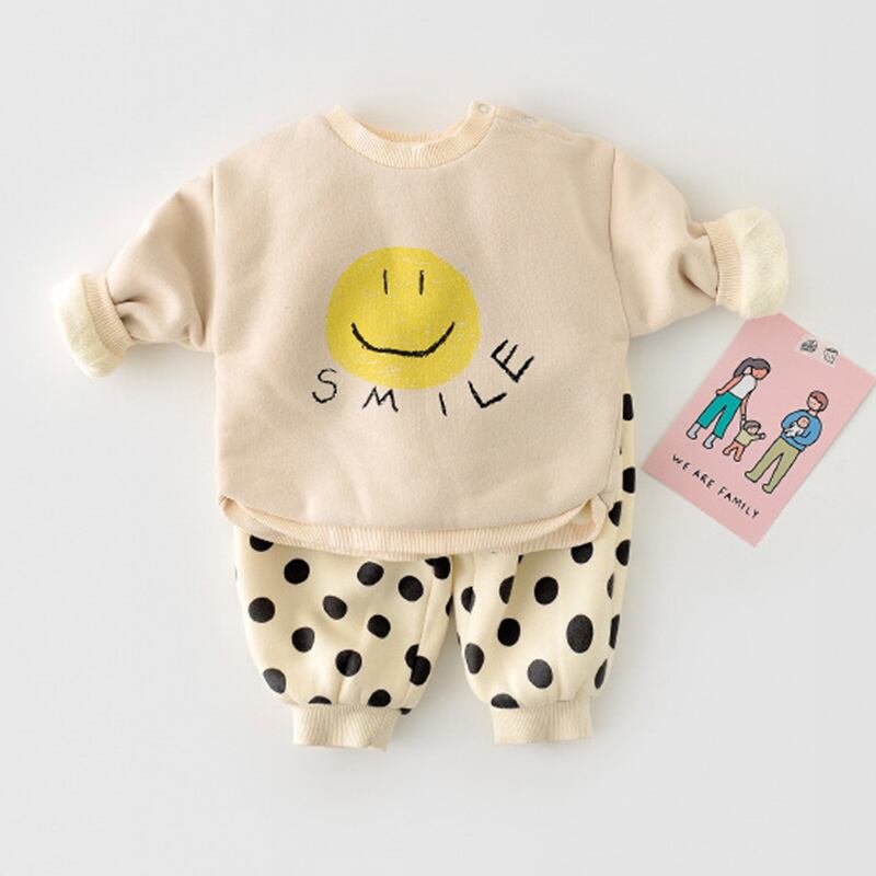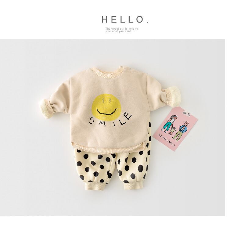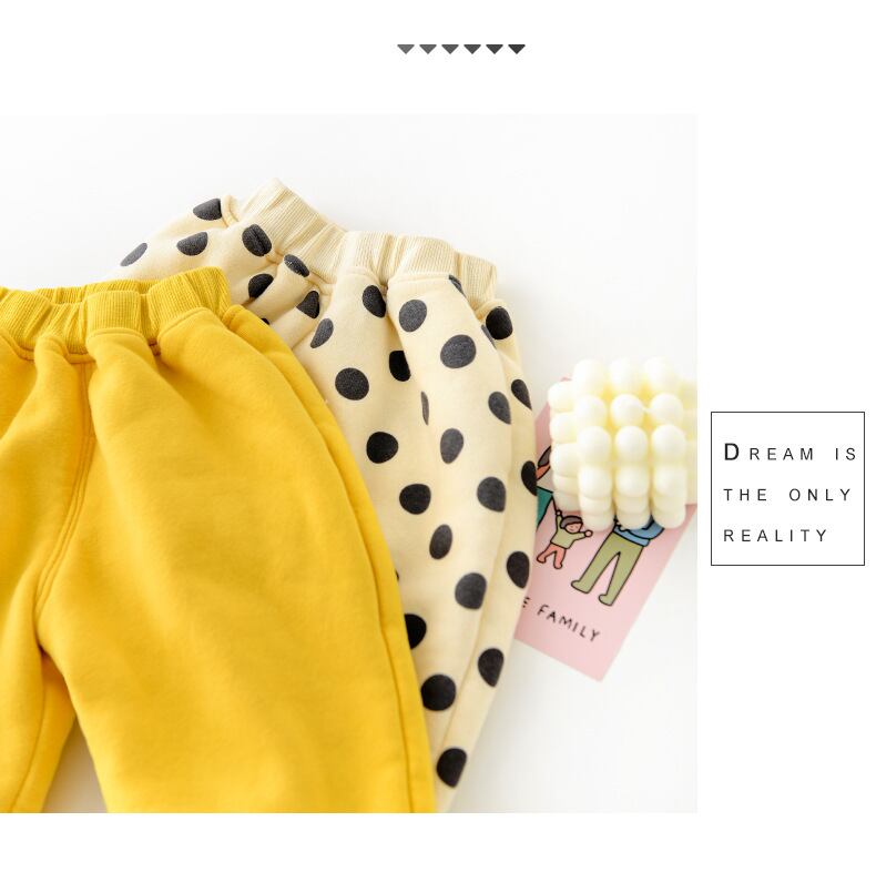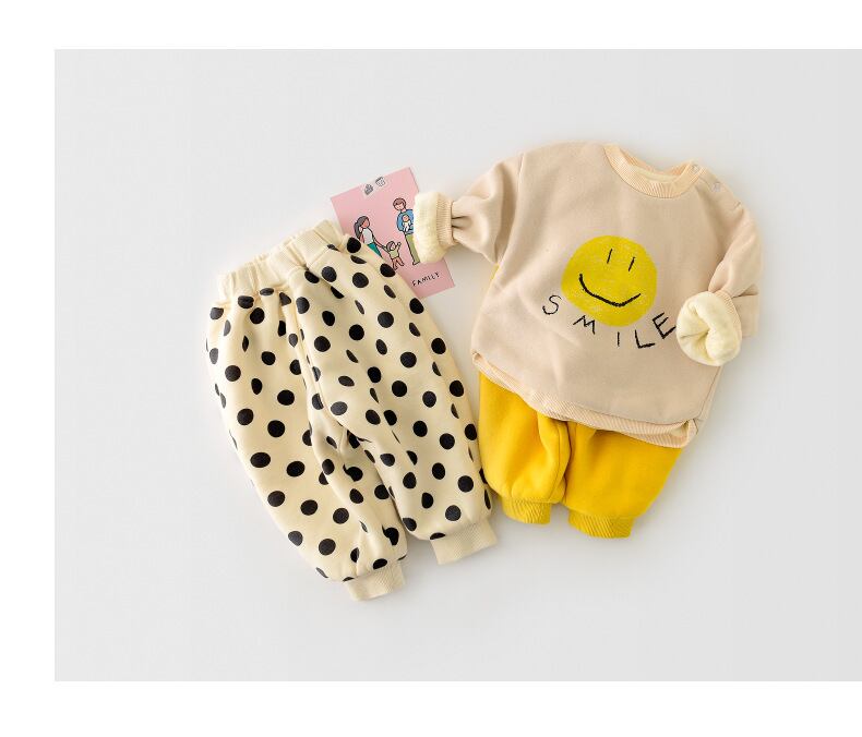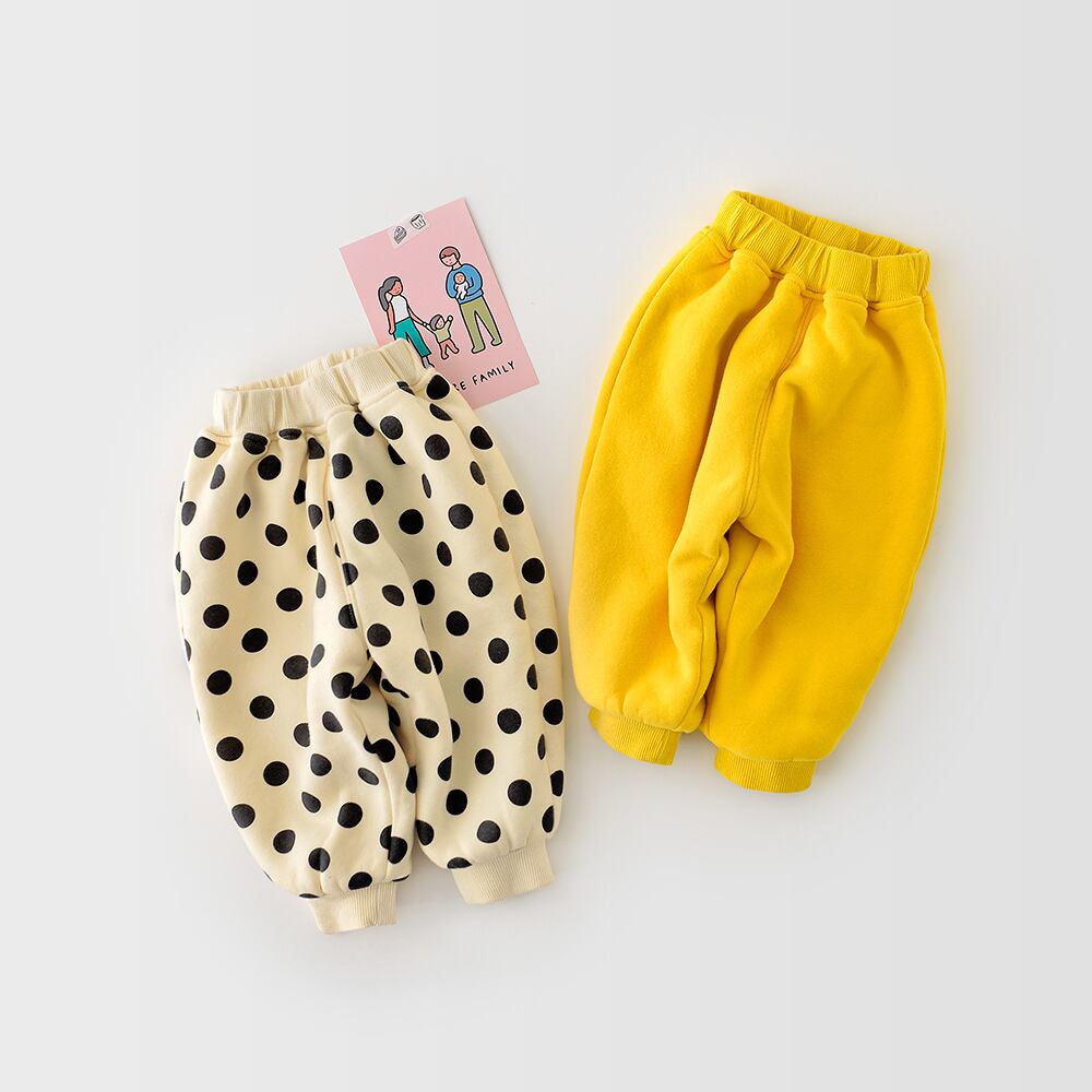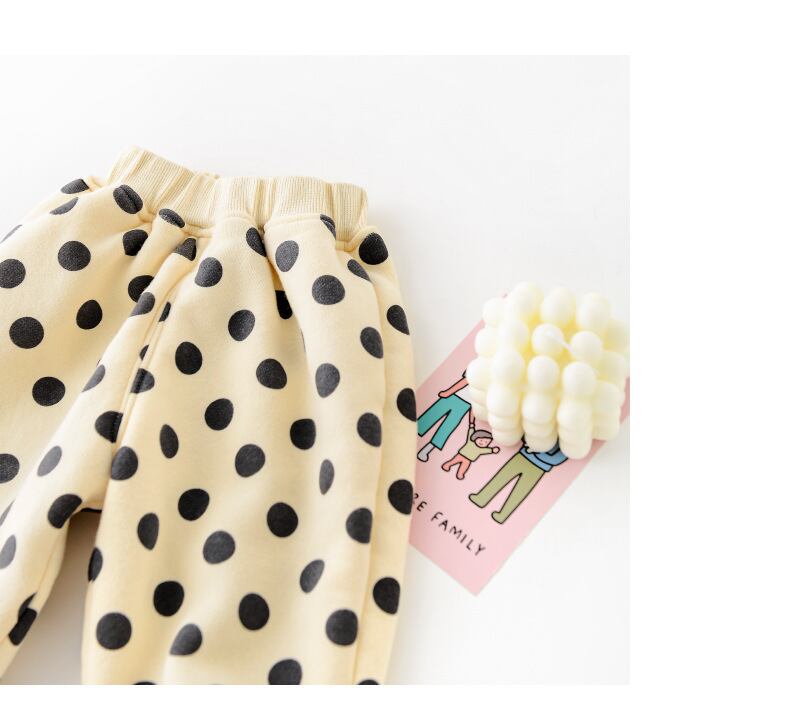 色:水玉パンツ+アプリコットセーター(プラスカシミア),水玉パンツ+スマイリーセーター(プラスカシミア),水玉コットンパンツ,黄色い綿のズボン,アプリコットとベルベットのセーター