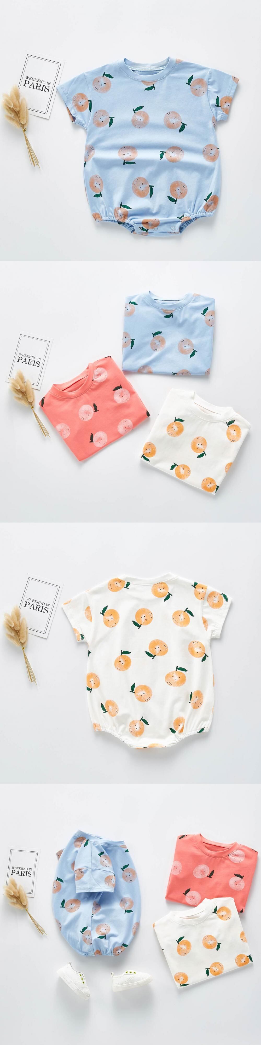 オレンジロンパース オールインワン Tシャツ ワンピース コットン 大人ガーリー スウィート キュート カジュアル mi0989061623765 | Sagittarius By Constellation -KIDS&BABY-