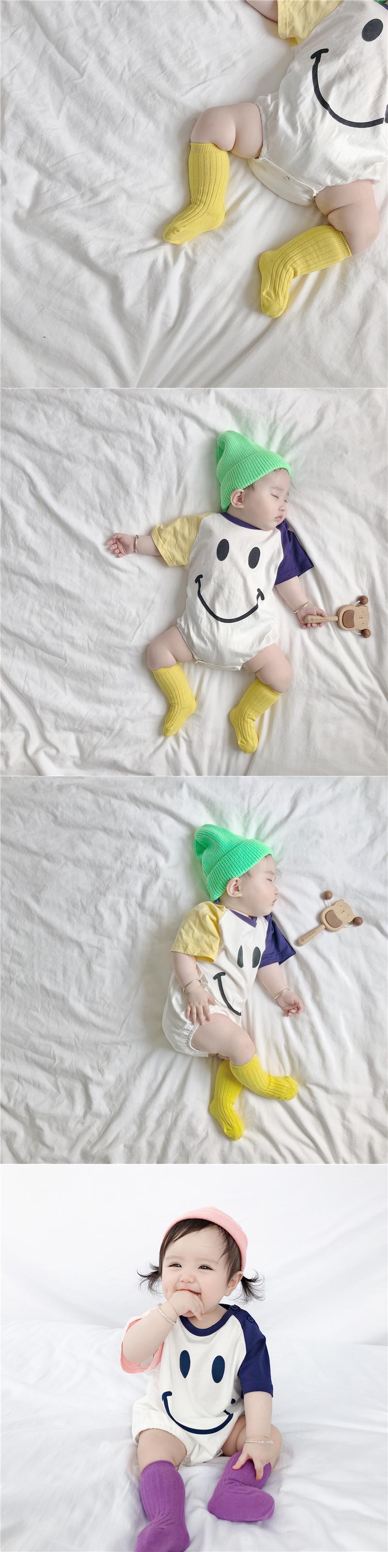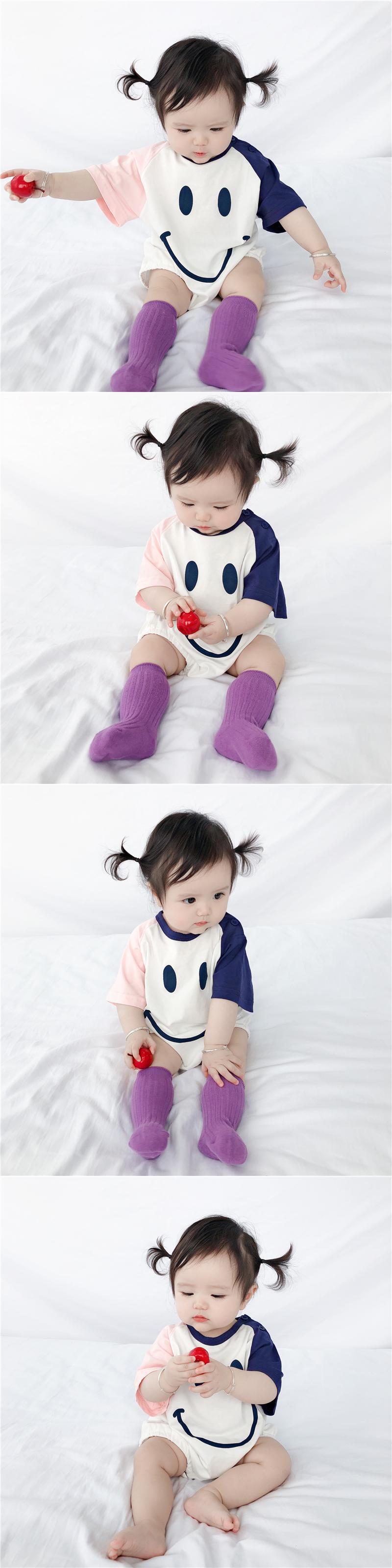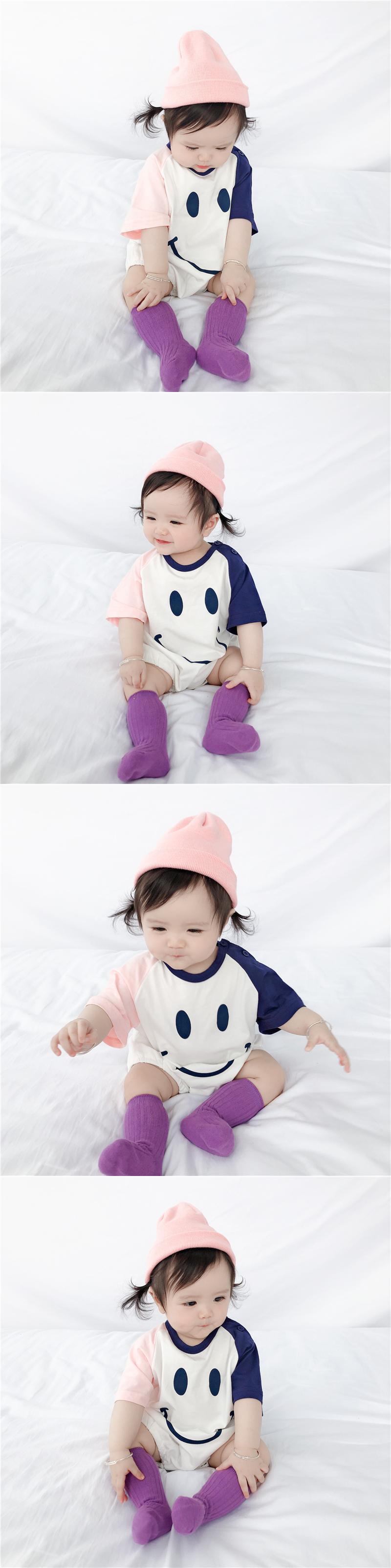 色:ピンク+パープル,イエロー+パープル,イエロー+パープルスマイリーロンパー+イエローソックス,ピンク+パープルスマイリーロンパー+パープルソックス