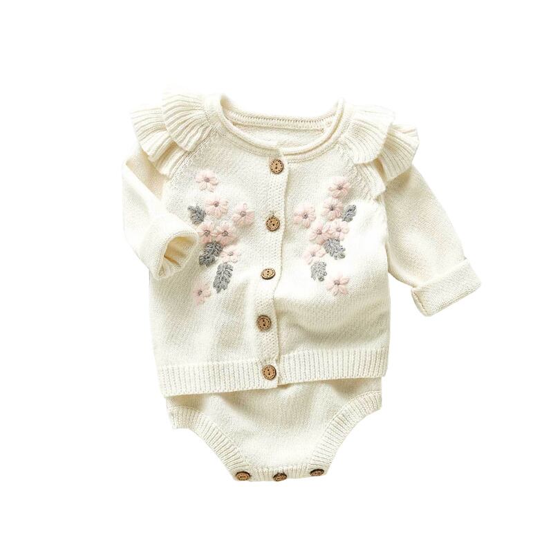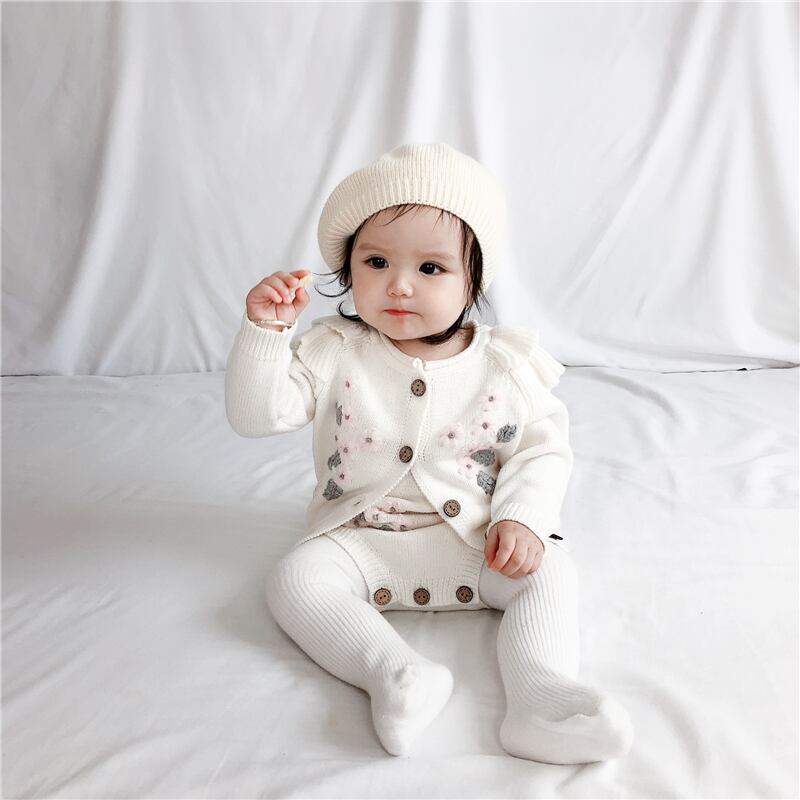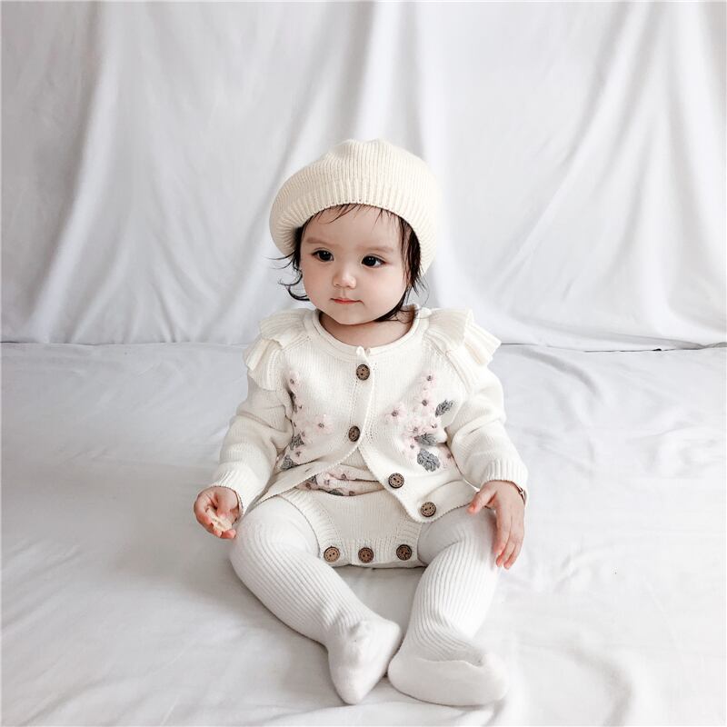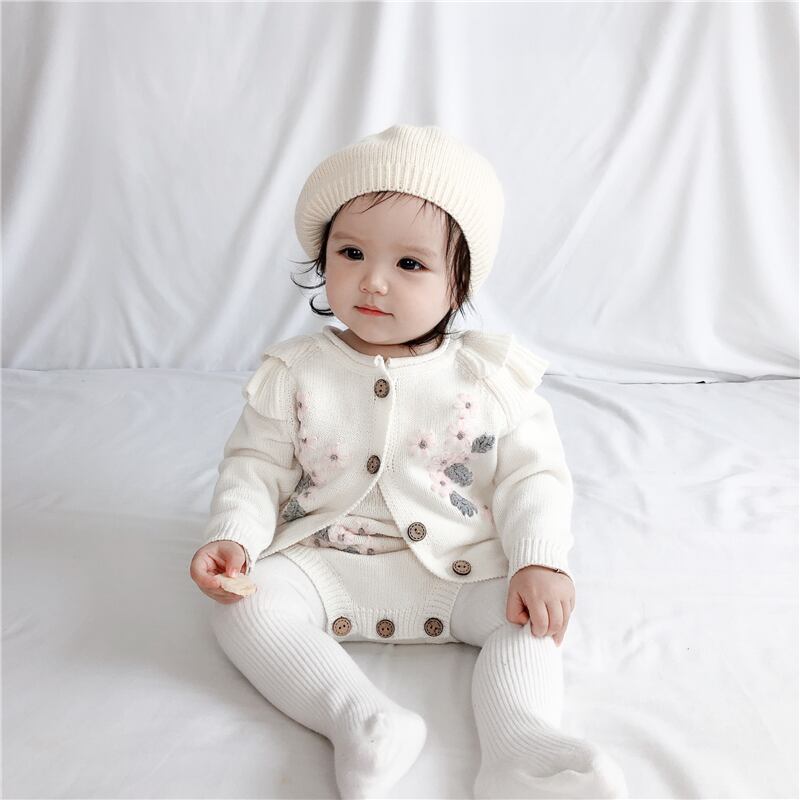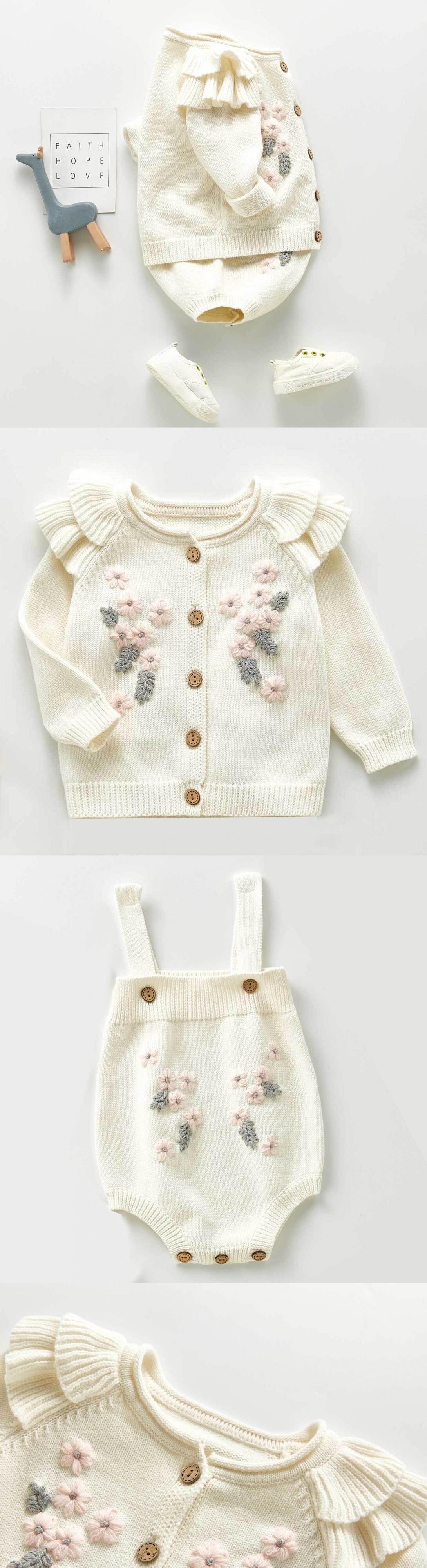 オータムウィンタードレス Flowerデザイン ジャケット ストラップ ロンパース オールインワン 秋物 冬物 フラワーデザイン mi0996899636723 | Sagittarius By Constellation -KIDS&BABY-