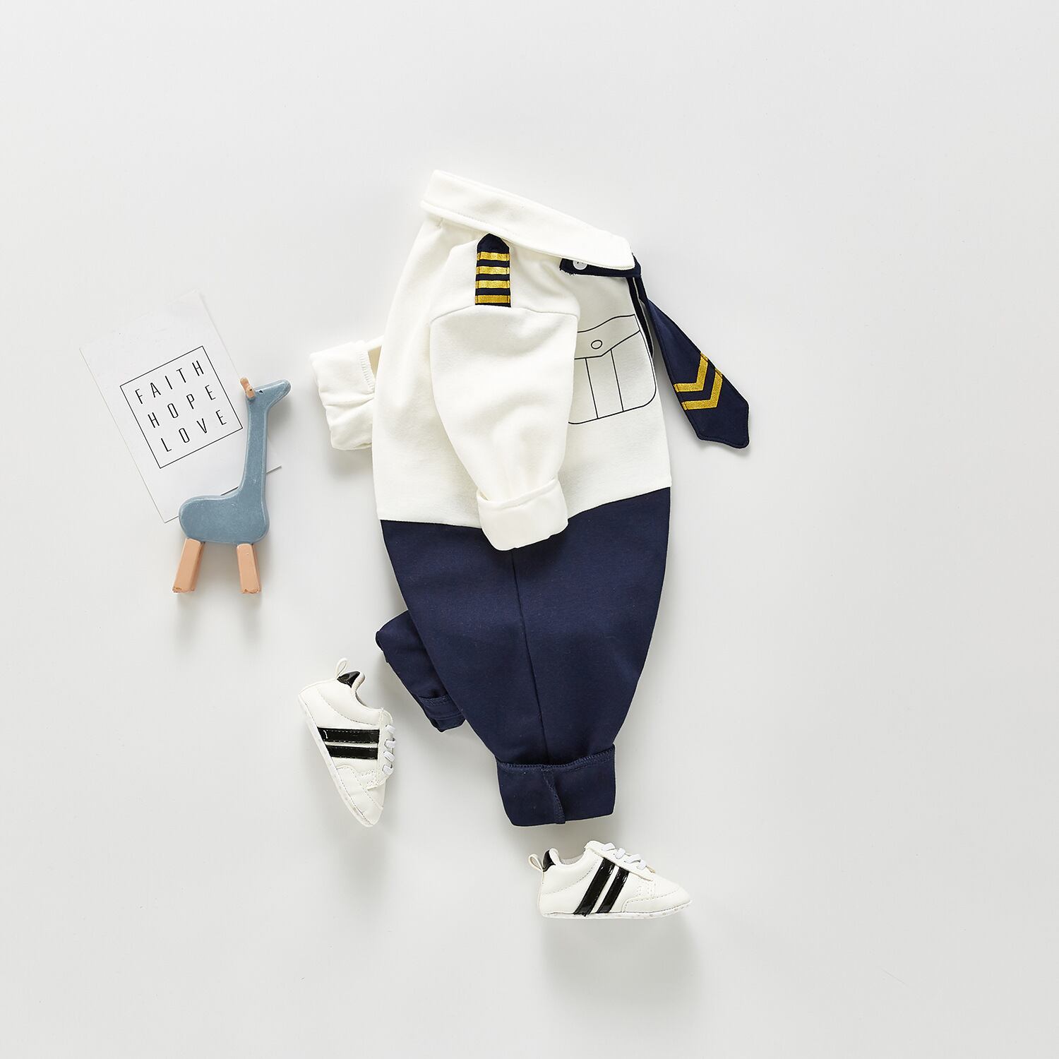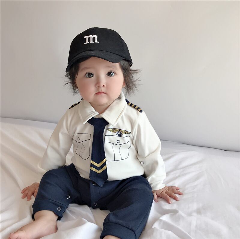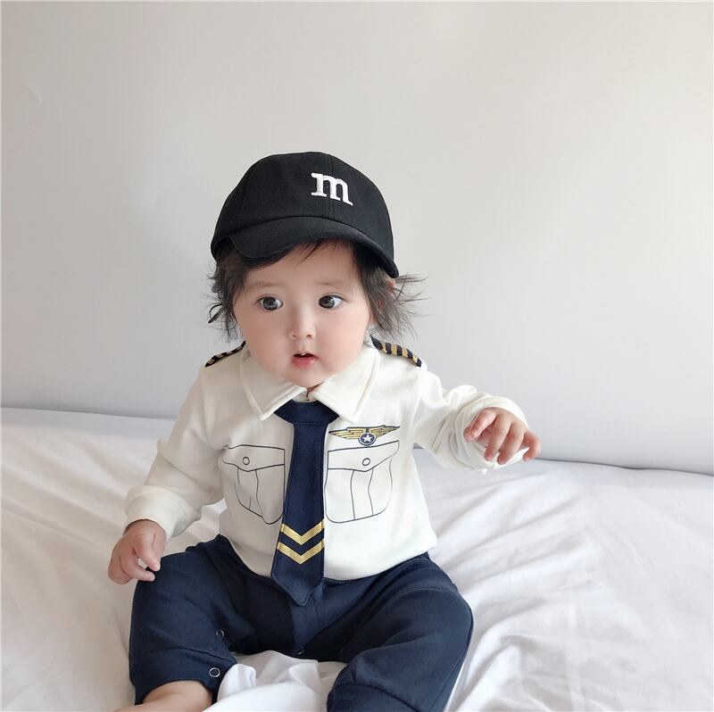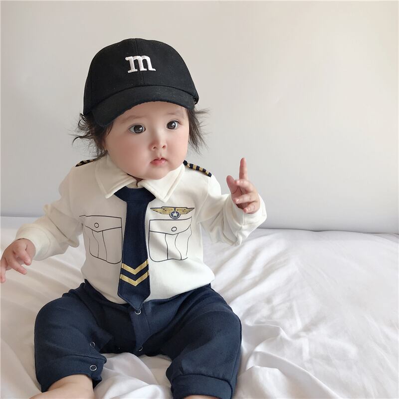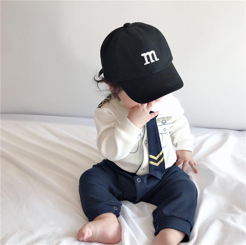 色:白青,白と青のワンピース+黒のひさしのついた帽子