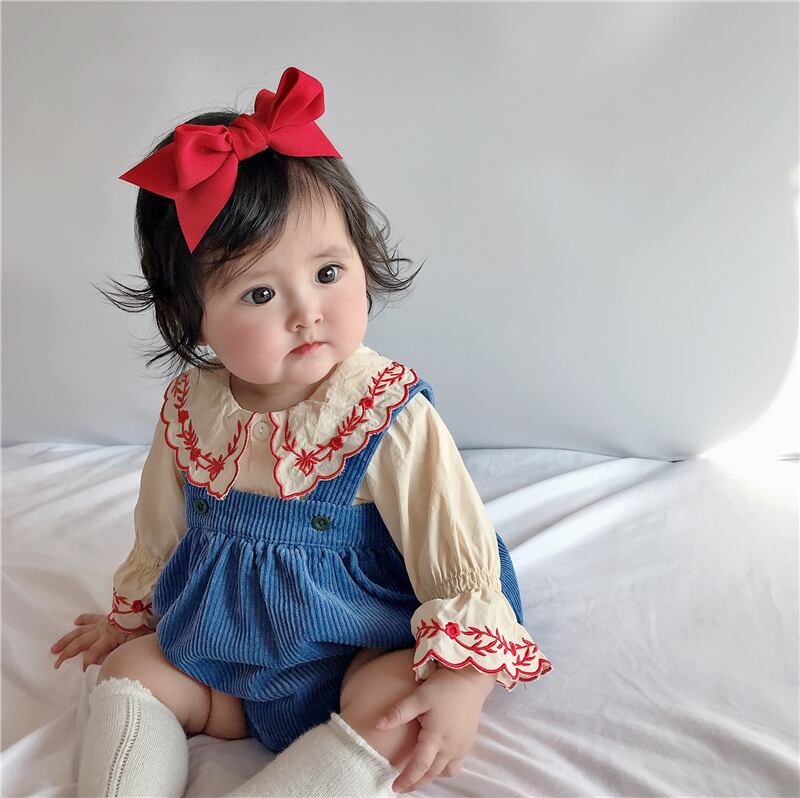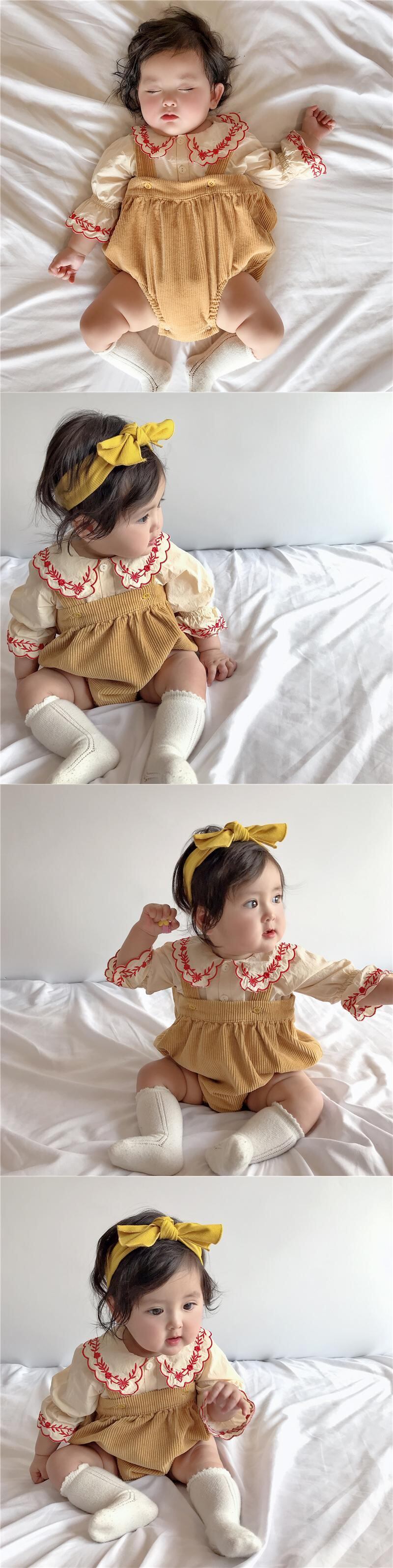 色:ブルーコーデュロイストラップ+レッドトップ(先行販売),ブルーフローラルストラップ+グリーン刺繍トップ(先行販売),黄色のコーデュロイストラップ+赤い刺繍のトップ,アプリコットコーデュロイストラップ+ライス刺繍トップス,ヴィンテージイエローフローラル+グリーン刺繍トップ,ブルースーツ+レッドヘアピン+ベージュソックス(先行販売),フローラルスーツ+イエローヘアバンド+ダークグリーンソックス(先行販売),黄色いスーツ+黄色いヘアバンド+ベージュの靴下,ヴィンテージイエローフローラルスーツ+イエローヘアバンド+ベージュソックス,アプリコットスーツ+カーキカチューシャ+ベージュソックス