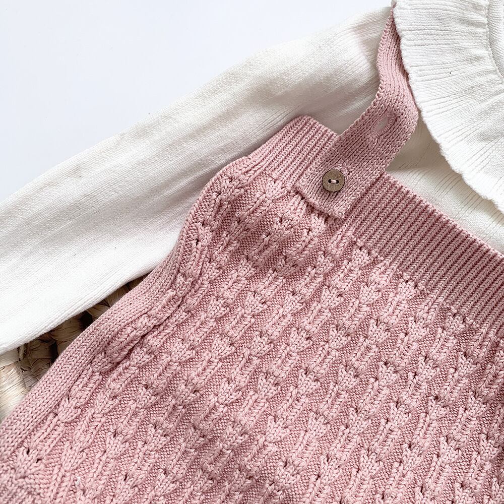 色:ピンクのサスペンダー,グレースリング,白いセーターコート,ホワイトボトミングシャツ