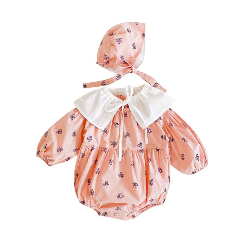 スプリングロンパース オールインワン ワンピースキャップ カラー ロング レッド コットン 刺繍 春物 mi0912175222050 | Sagittarius By Constellation -KIDS&BABY-