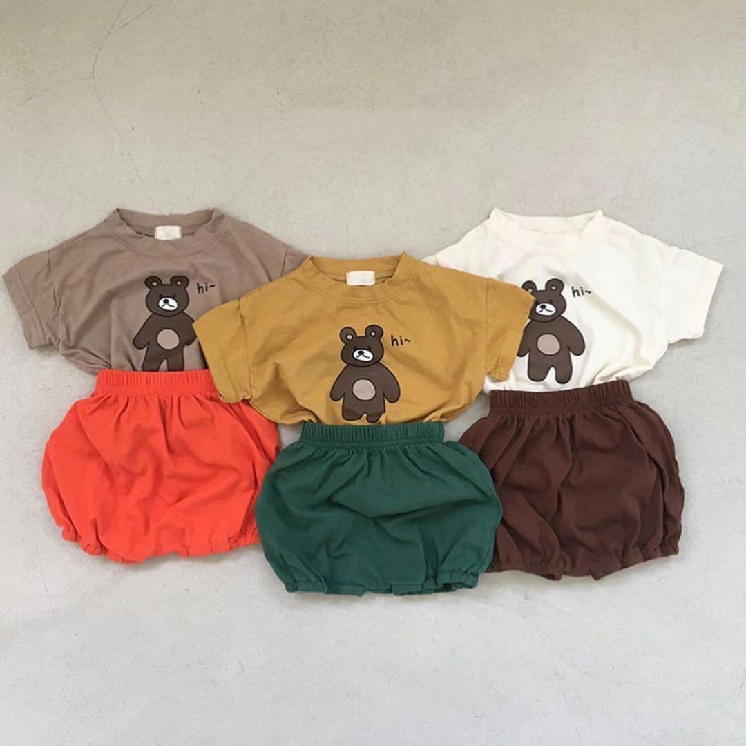 色:カーキトップ+オレンジレッドショーツ,ホワイトトップ+シーショーツ,ターメリックトップ+ダークグリーンショーツ