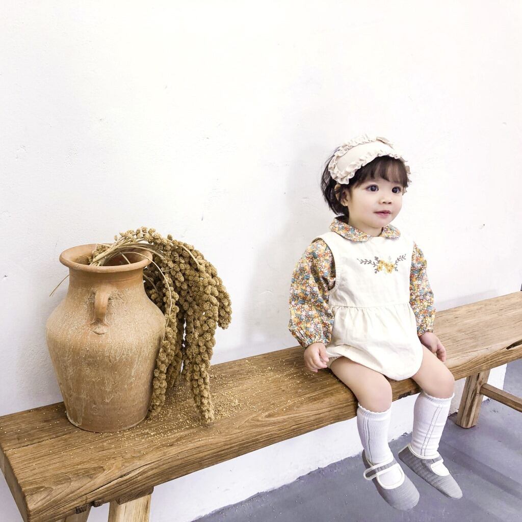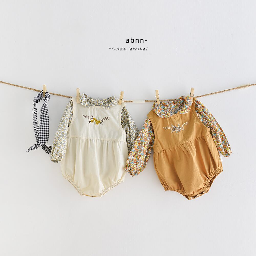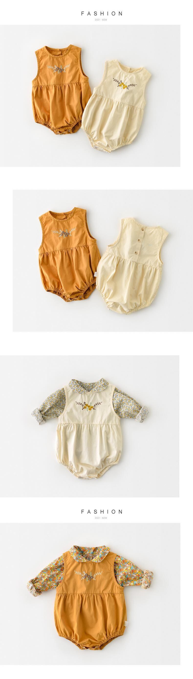 スプリングサマーロンパース オールインワン ノースリーブ レッド 刺繍 春物 夏物 フラワーデザイン mi0997873716014 | Sagittarius By Constellation -KIDS&BABY-