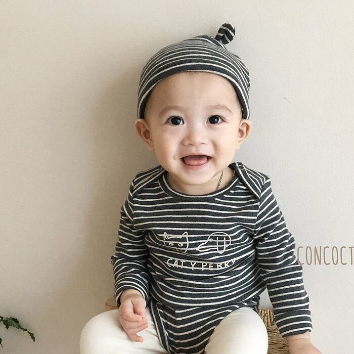 スプリングストライプトライアングルワンピースロンパース オールインワン プリント柄 帽子 大人ガーリー スウィート キュート カジュアル 春物 mi0980129081367 | Sagittarius By Constellation -KIDS&BABY-