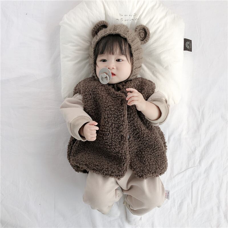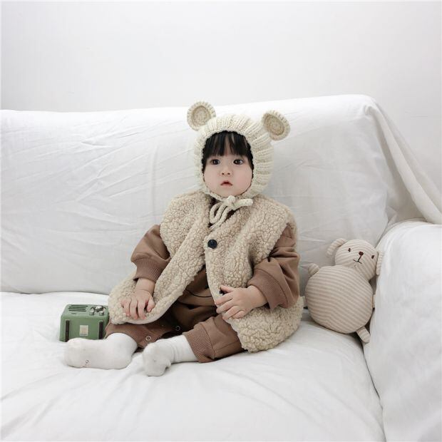 色:アプリコット,褐色,アプリコットベスト+ブラウンプラスベルベットクマロング,Ceeベスト+ベージュ+ベルベットベアロングボディ,アプリコットベスト+ブラウンプラスベルベットワンピース+ベージュハット,ブラウンベスト+ベージュ+ベルベットワンピース+ブラウンキャップ