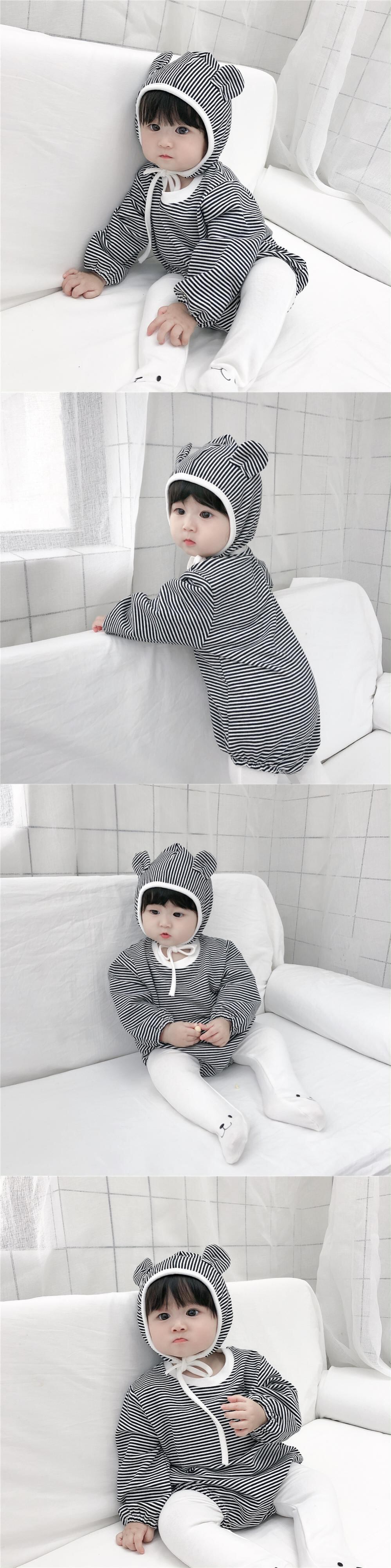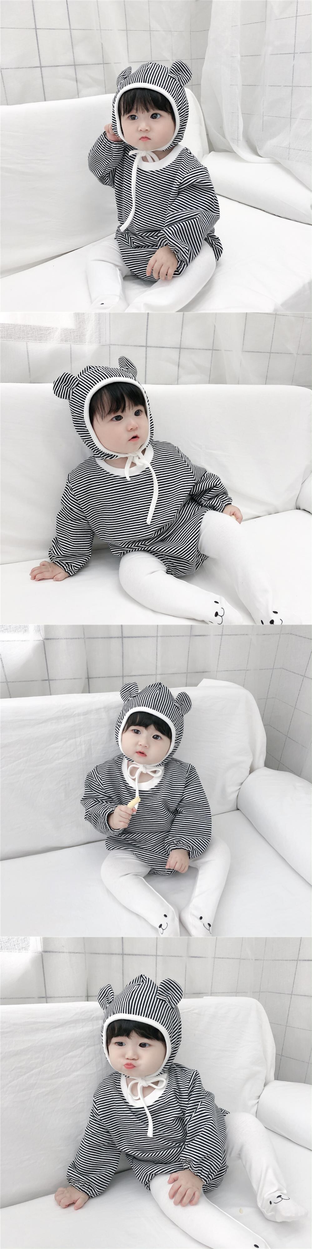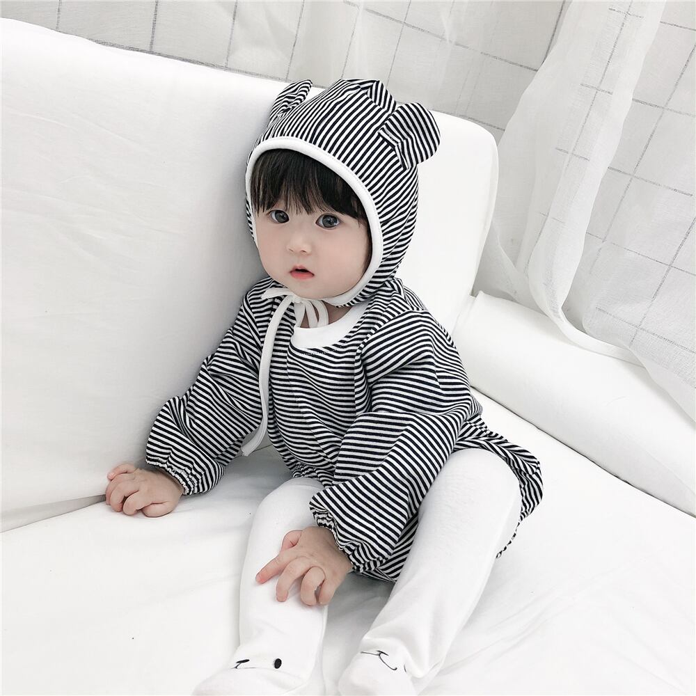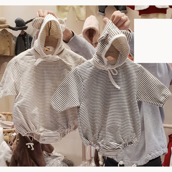 スプリングオータムストライプロンパース オールインワン コットン 帽子 大人ガーリー スウィート キュート カジュアル 春物 秋物 mi0972418443450 | Sagittarius By Constellation -KIDS&BABY-