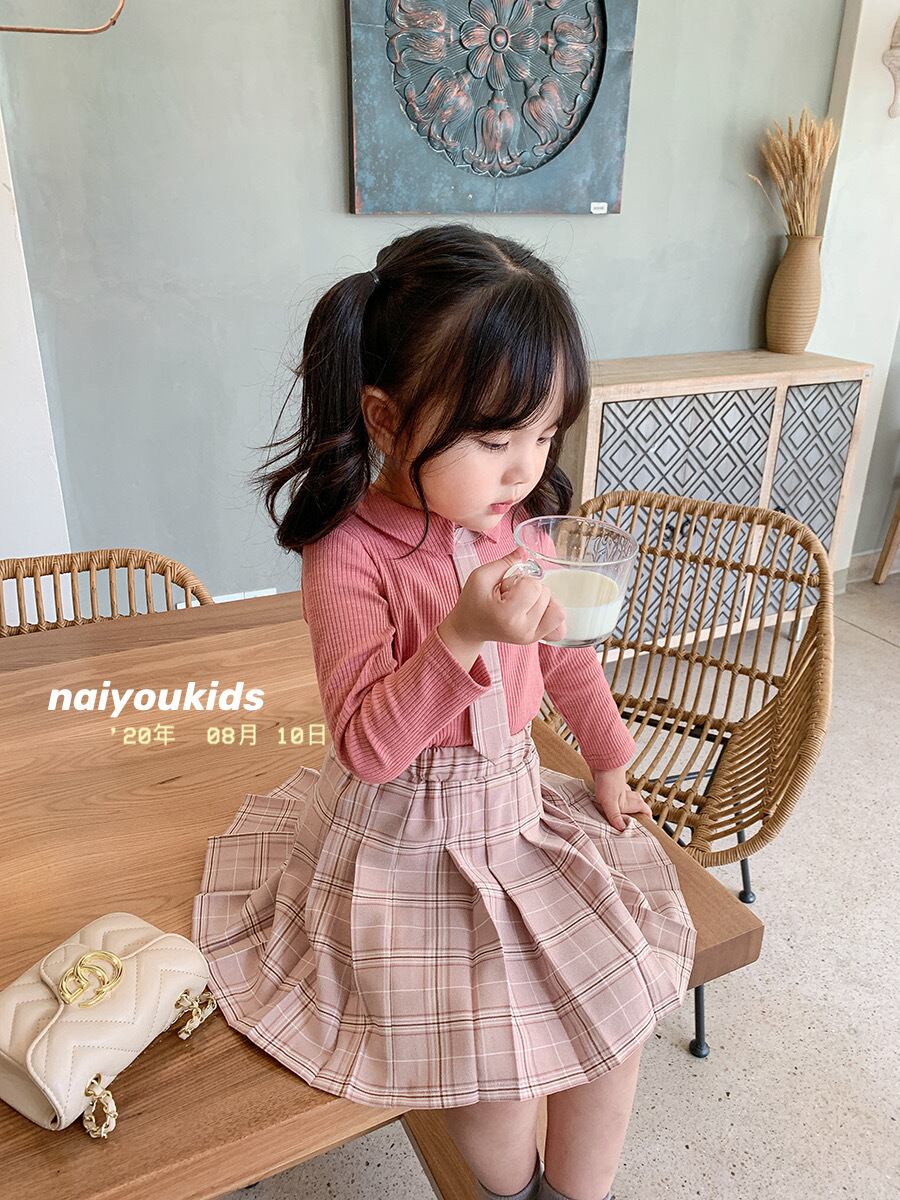 色:ホワイトトップ,グレースカート,赤レンガのトップ,ピンクのチェック柄スカート