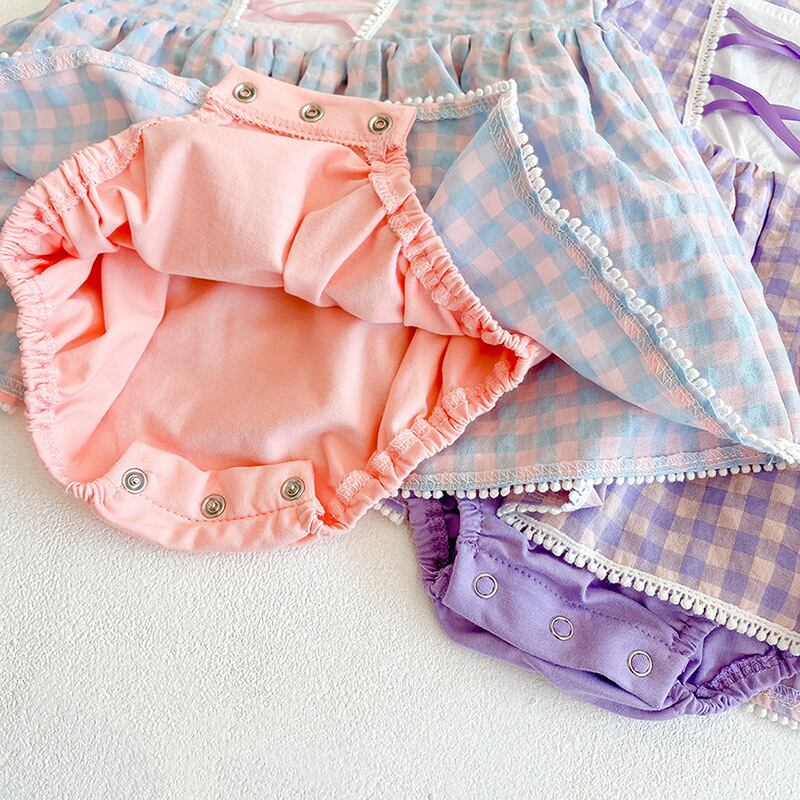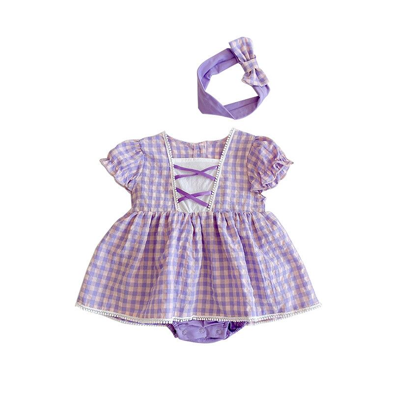 サマーワンピース薄手格子柄ロンパース オールインワン コットン 夏物 ピュア パープル 4/24 mi097497393487 | Sagittarius By Constellation -KIDS&BABY-