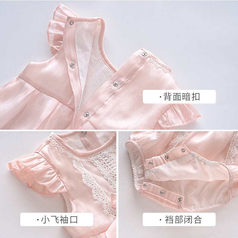 サマースタイルワンピースドレス トライアングルロンパース オールインワン ピンク レッド レース 夏物 4/24 mi0991078516164 | Sagittarius By Constellation -KIDS&BABY-
