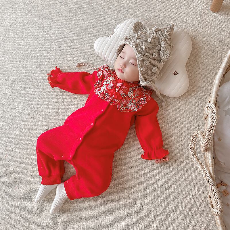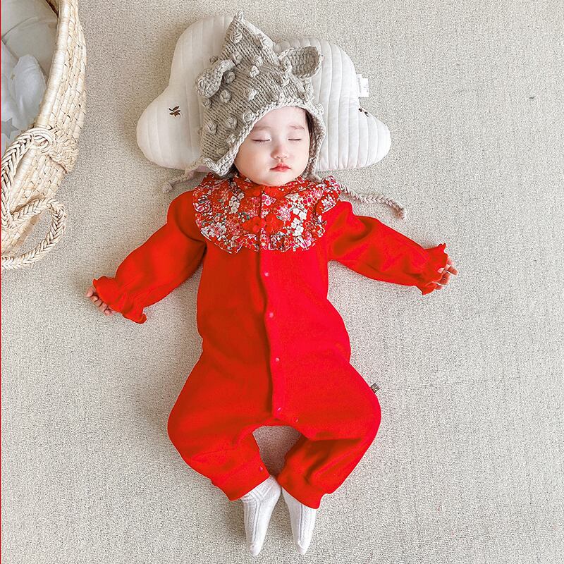 スプリングオータムワンピースウィンタースタイルレッドロンパース オールインワン コットン 春物 秋物 冬物 4/24 mi0963881011284 | Sagittarius By Constellation -KIDS&BABY-