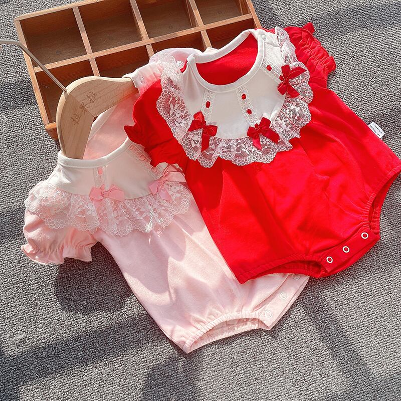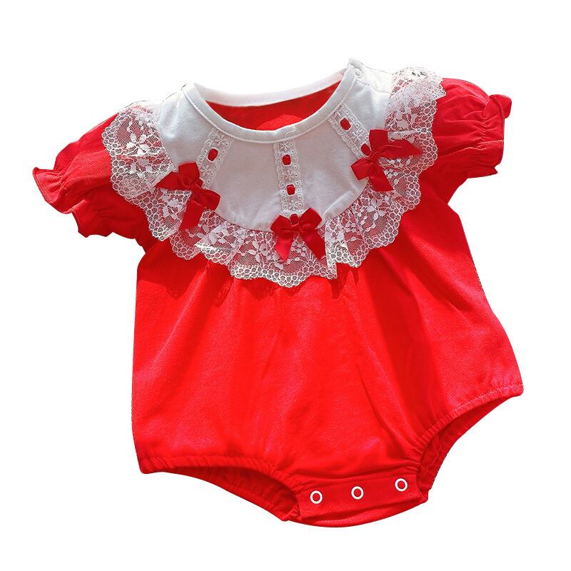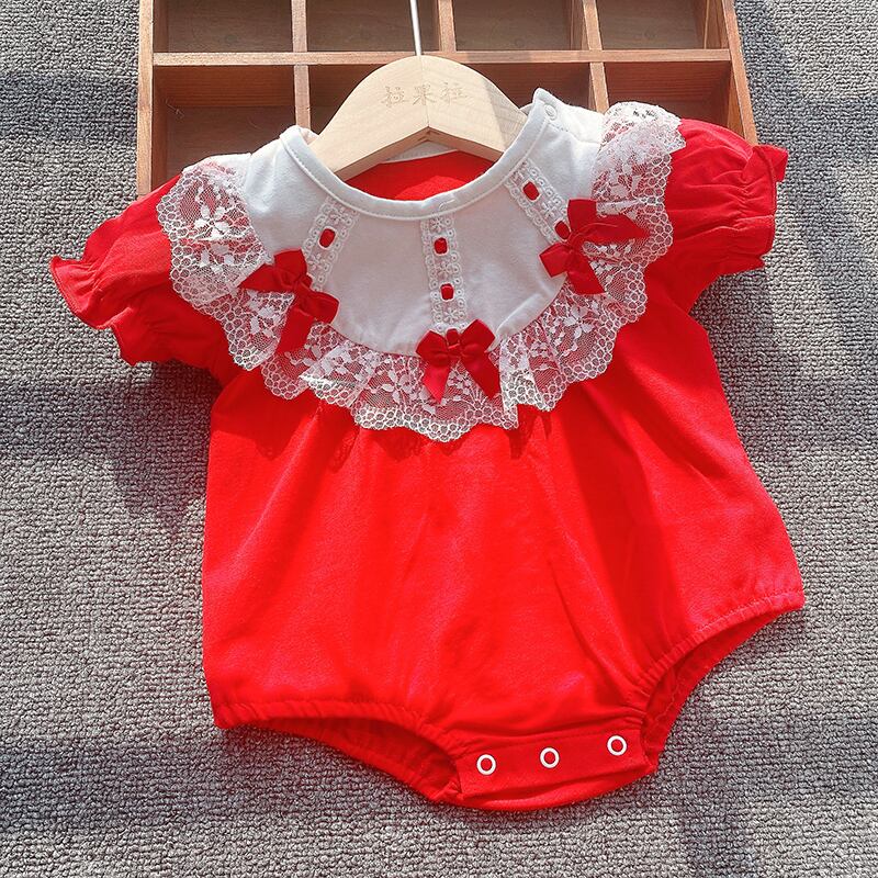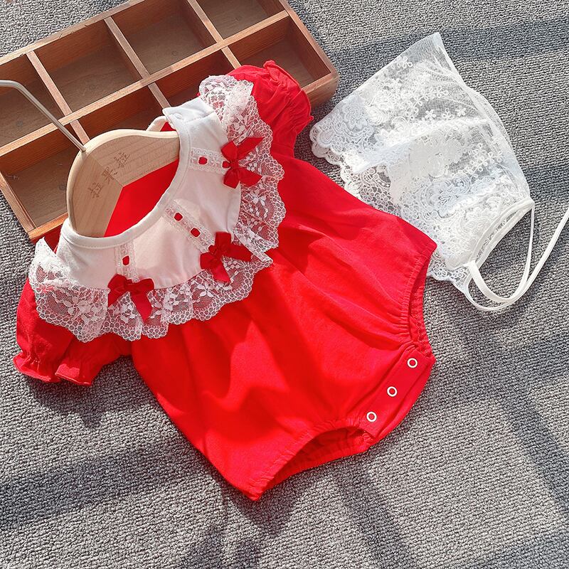 サマーワンピースロンパース オールインワン ドレス トライアングル薄手 レッド コットン 夏物 ピュア 4/24 mi0982217985456 | Sagittarius By Constellation -KIDS&BABY-