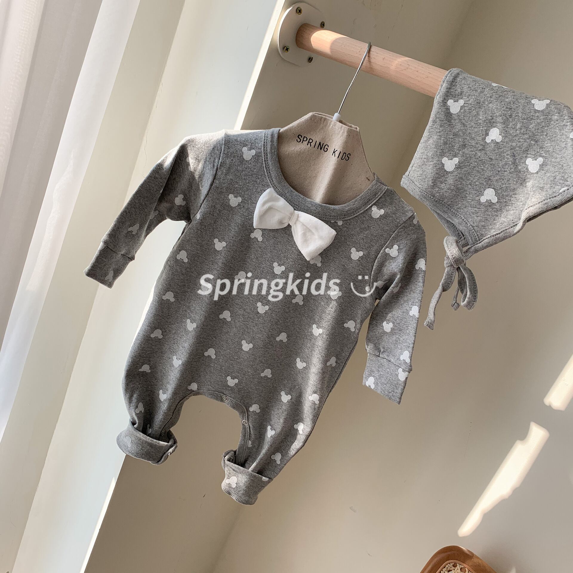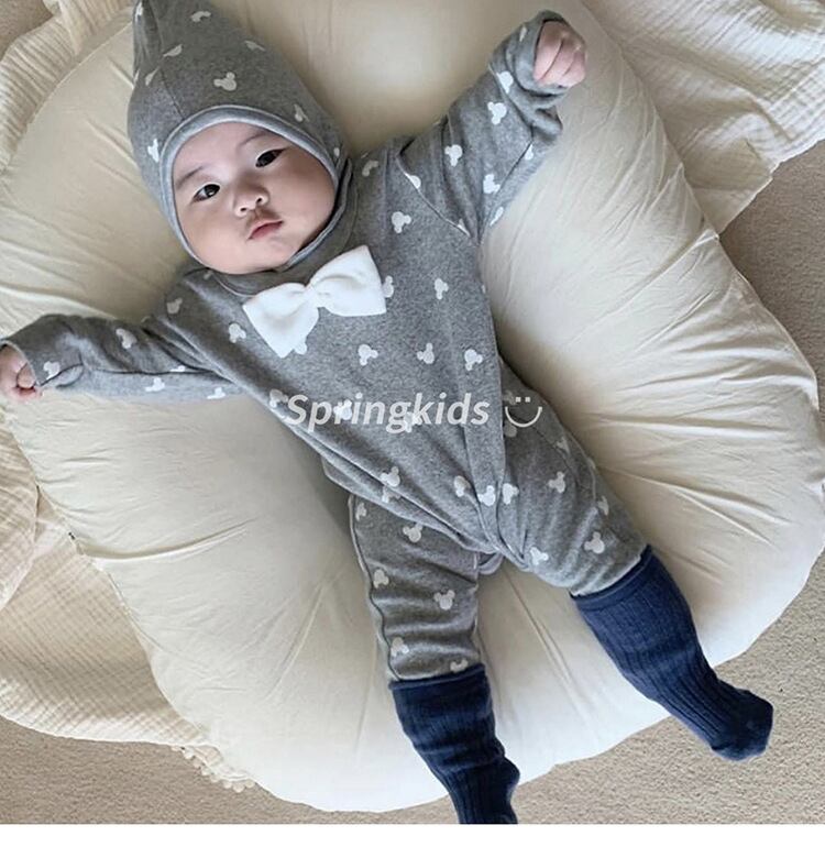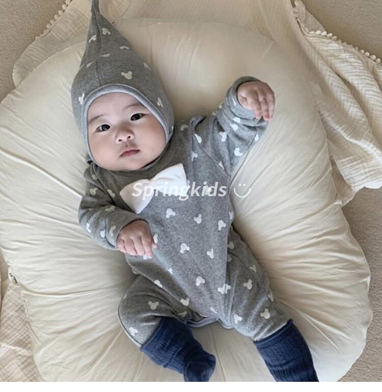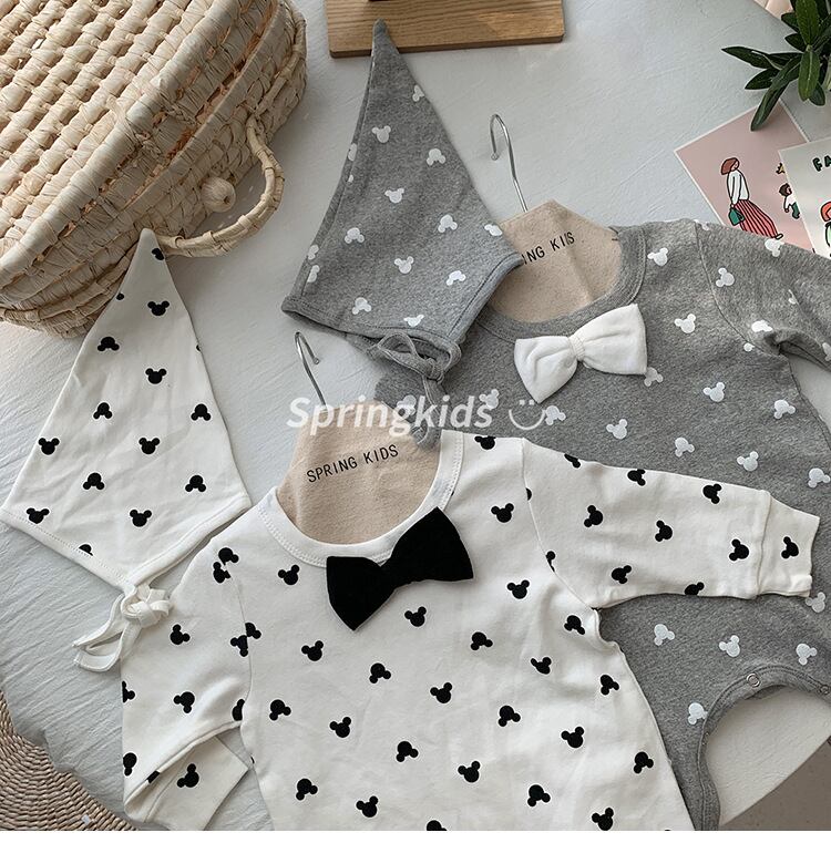 色:白いロンパー+帽子,グレー+フリーキャップ