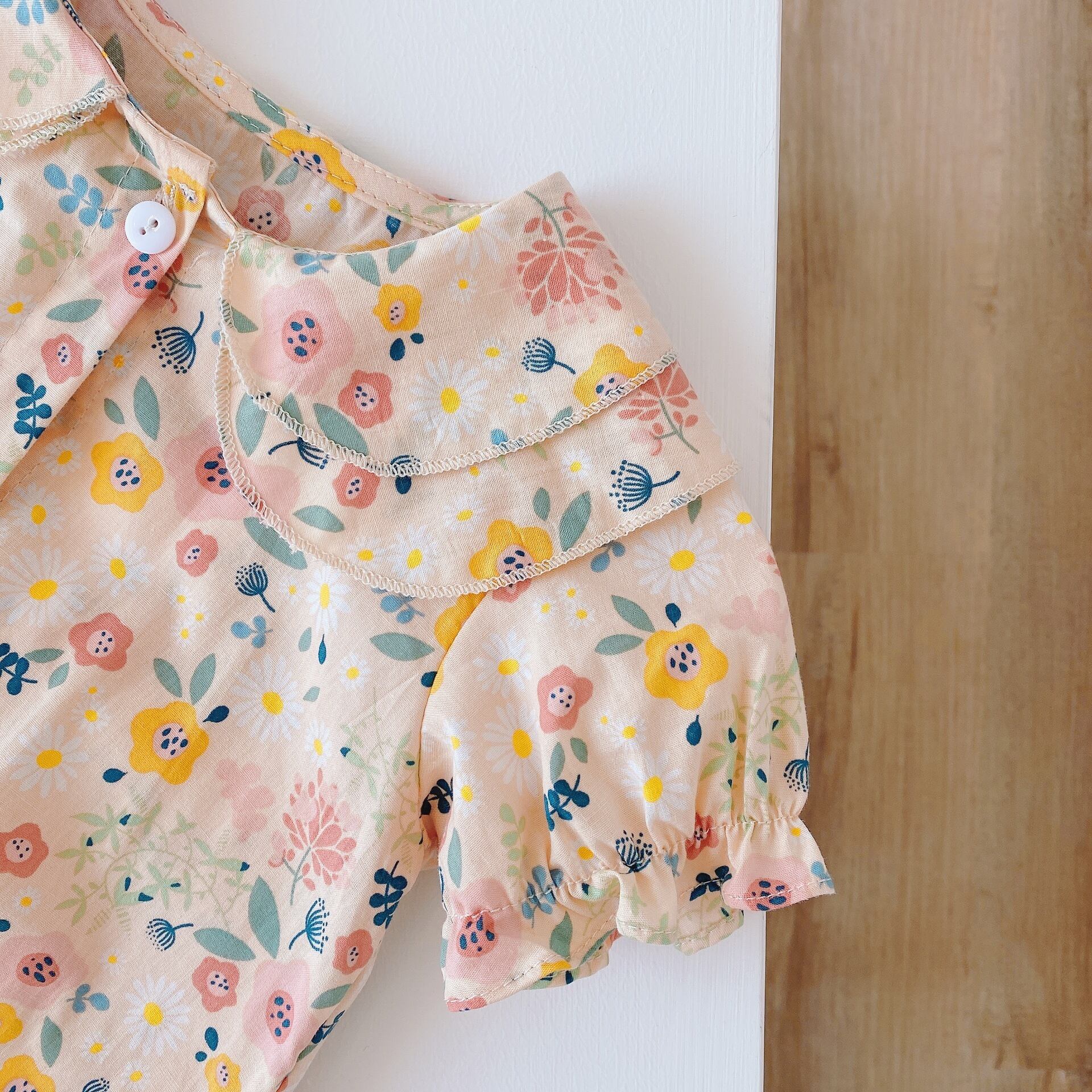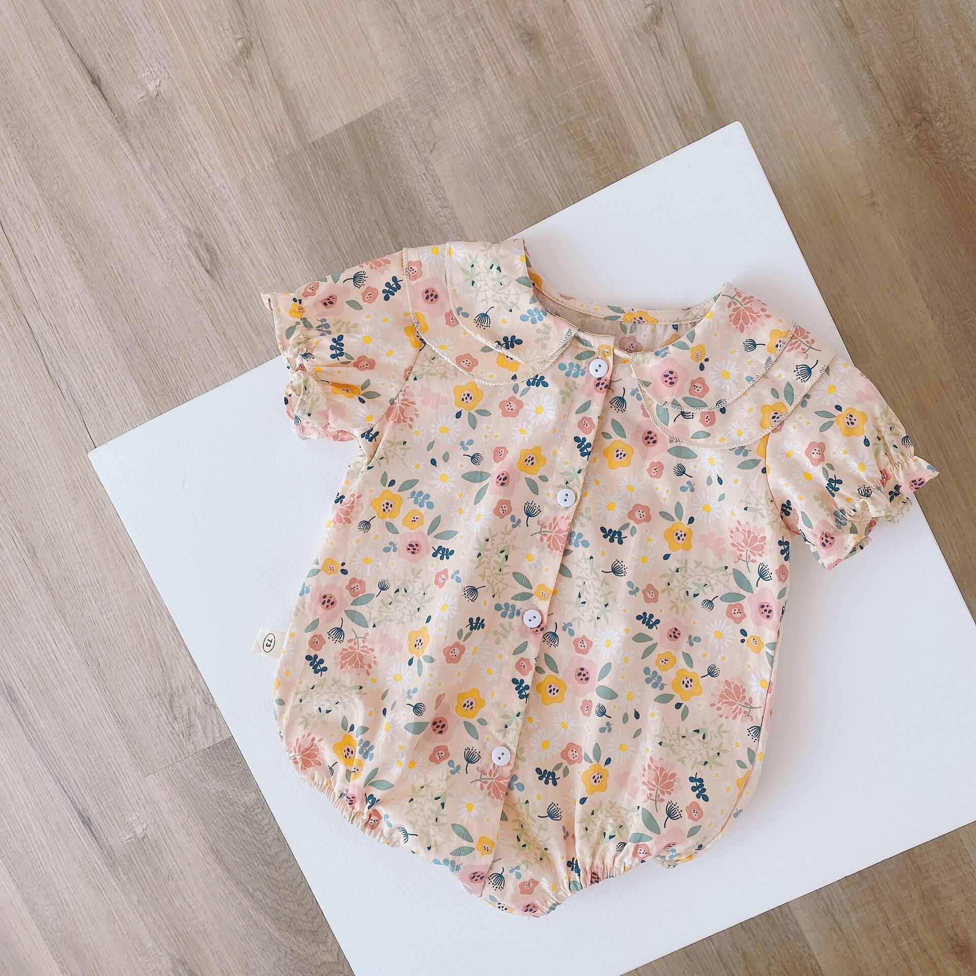 色:斬新なフローラルロンパース,フラワーイエローロンパース,レトロな洋風菊チャイナドレスロンパース