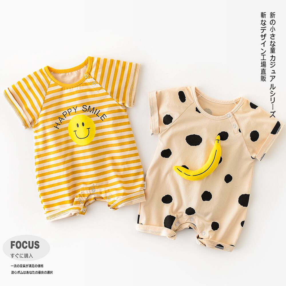 色:バナナ半袖ショーツロンパース,スマイリー半袖ショーツロンパース,バナナスリングロンパース,スマイリースリングロンパース