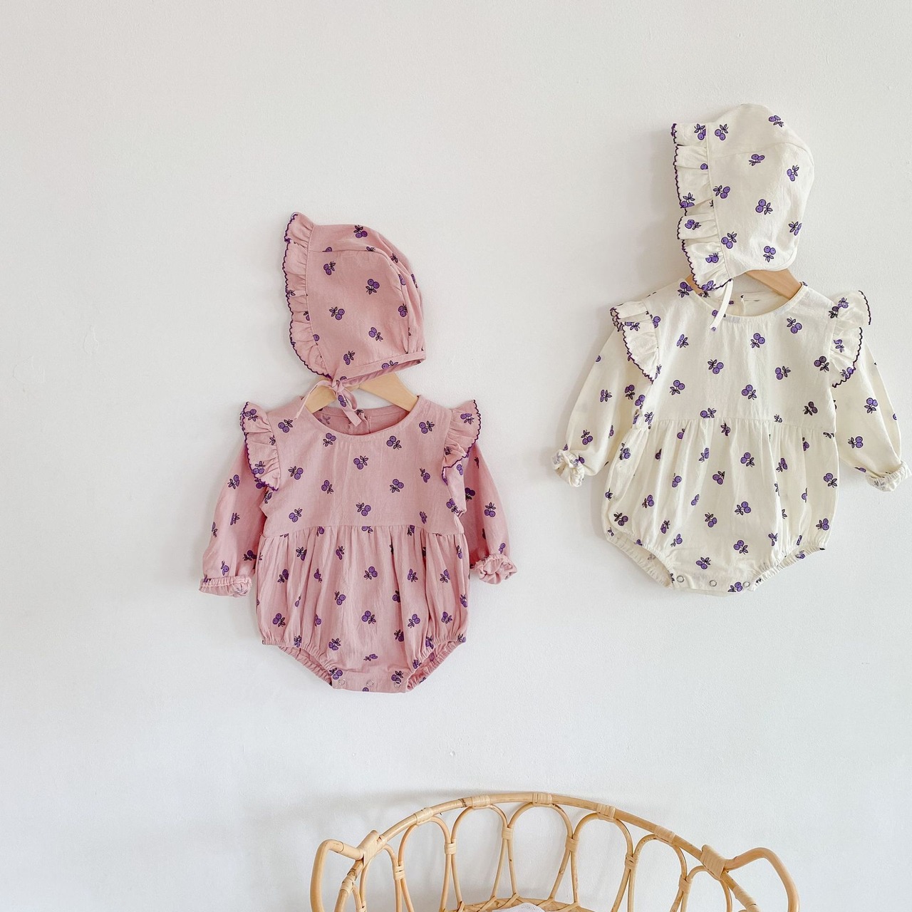 オータムフローラルロンパース オールインワン ジャンプスーツ オールインワン スタイル コットン 帽子 秋物 花柄 4/24 mi0999506423228