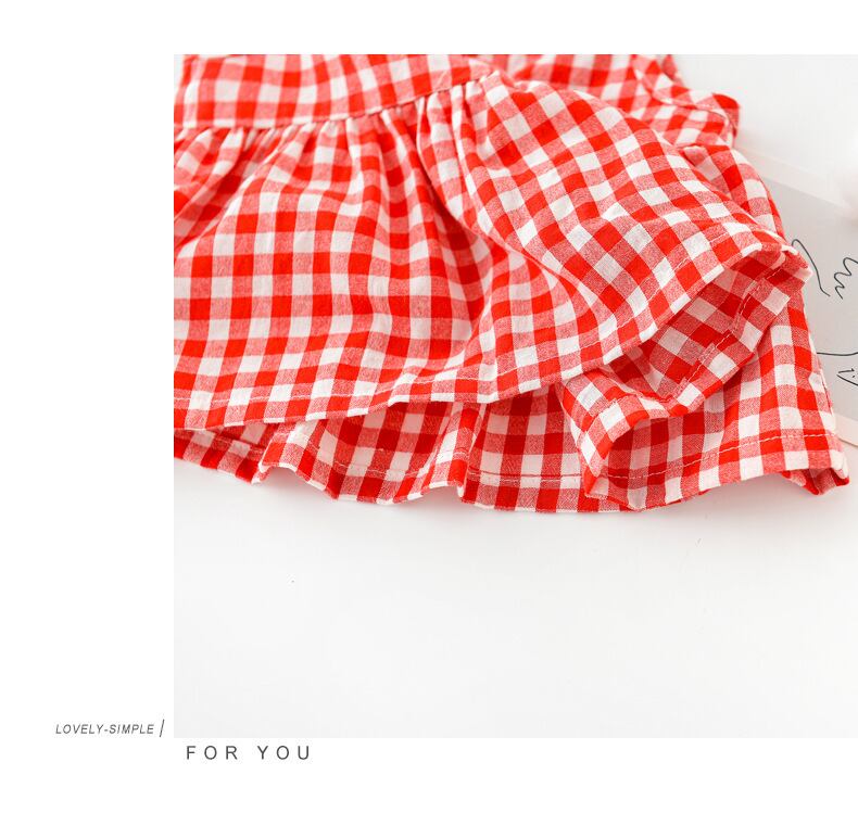 色:赤い格子のスリーピーススーツ