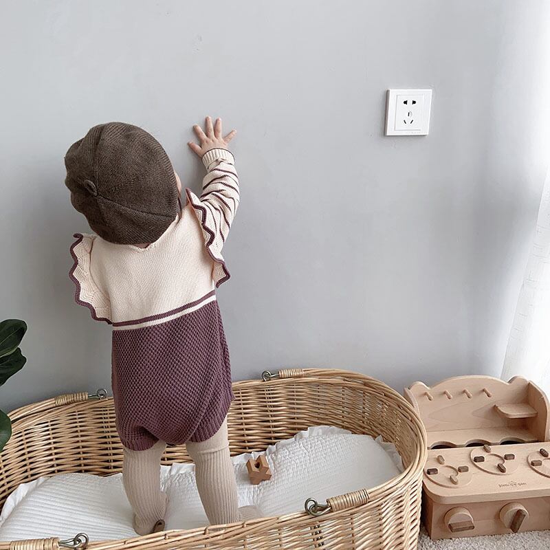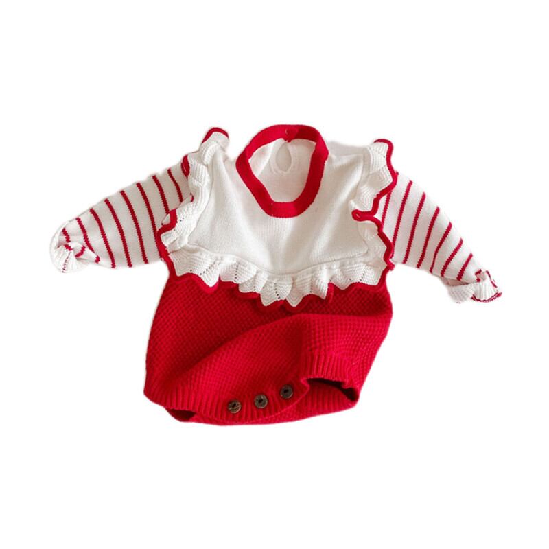 オータムトライアングルロンパース オールインワン ニットワンピースウィンター レッド コットン 秋物 冬物 4/24 mi09865618579 | Sagittarius By Constellation -KIDS&BABY-