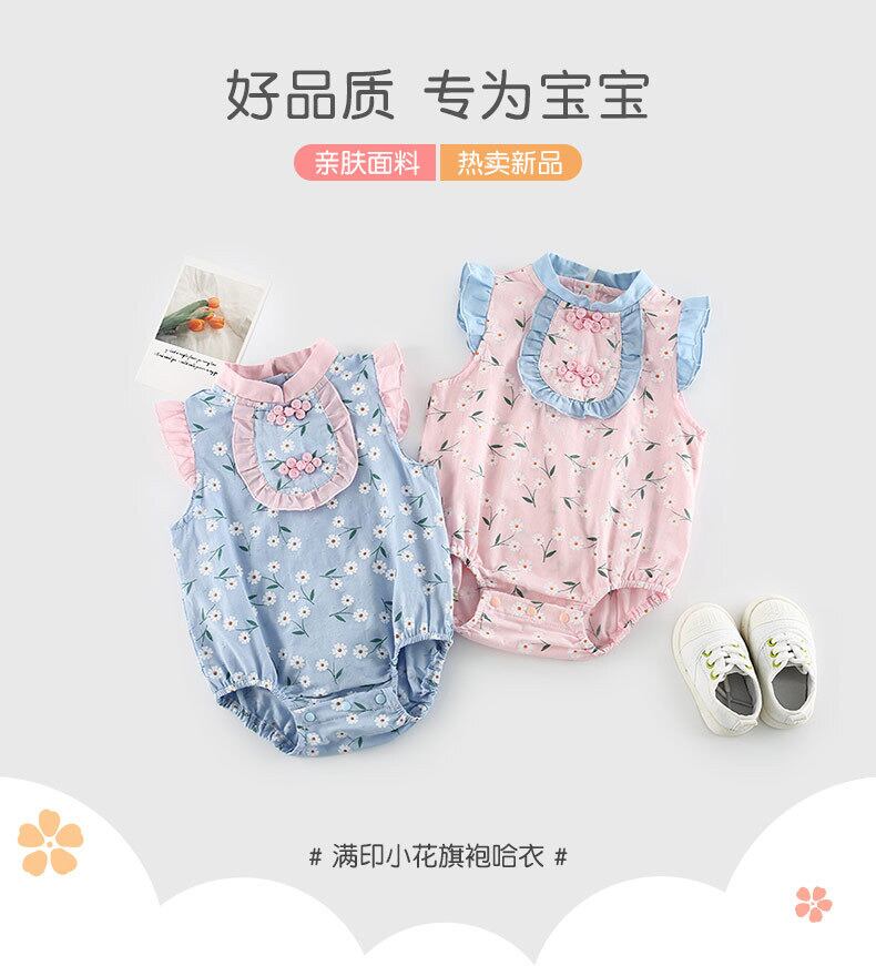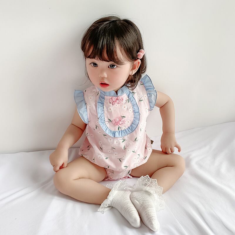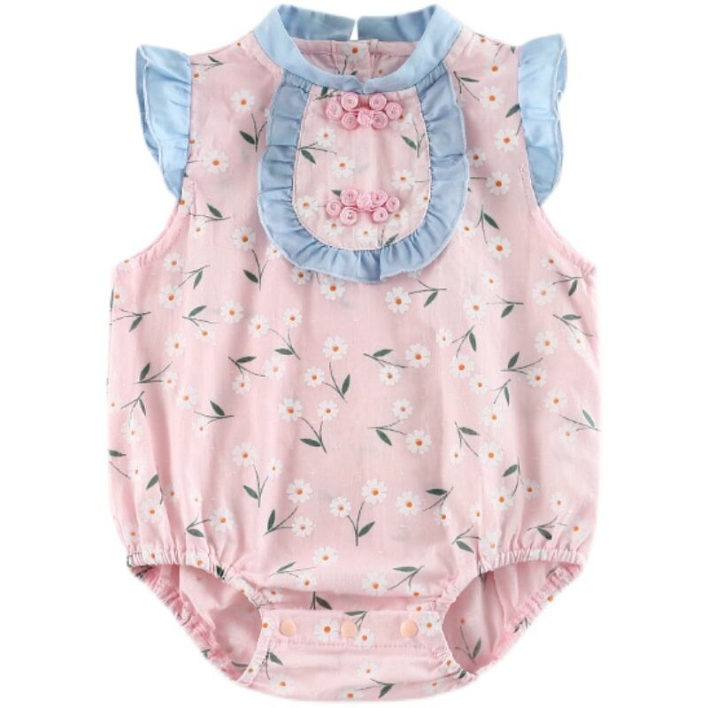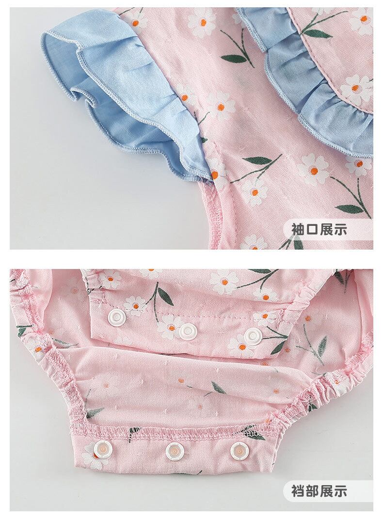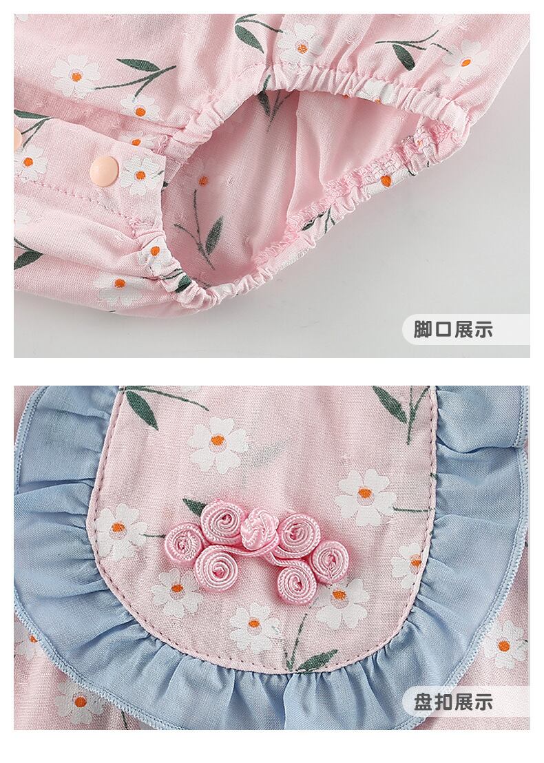 サマーレッドスタイルワンピースフローラルトライアングルロンパース オールインワン 薄手 コットン 夏物 花柄 4/24 mi0973986557392 | Sagittarius By Constellation -KIDS&BABY-
