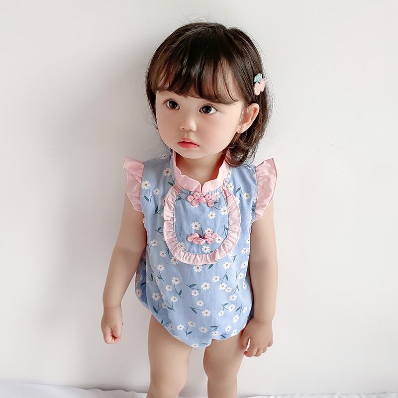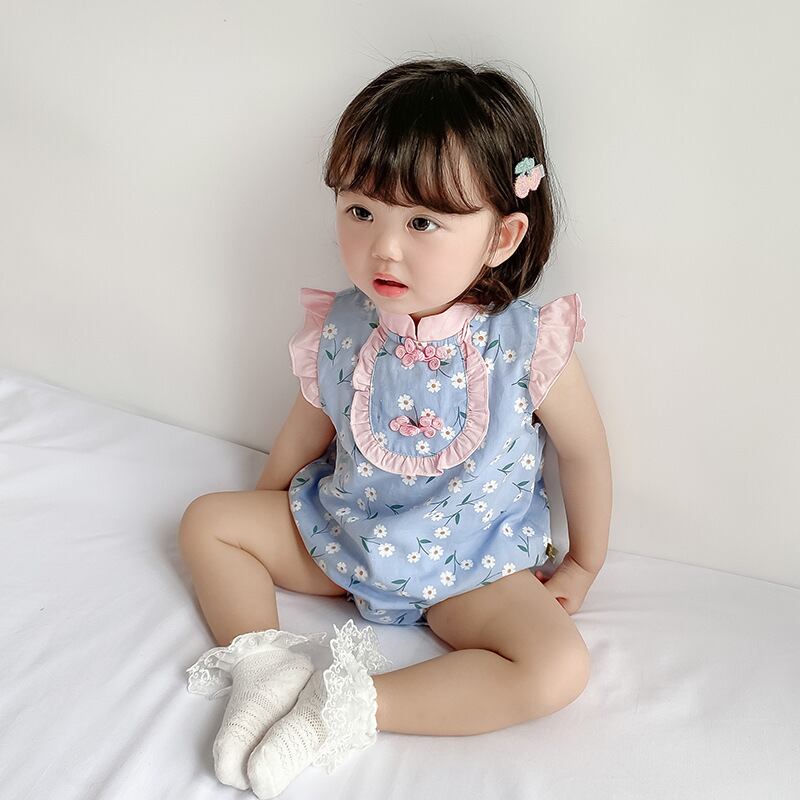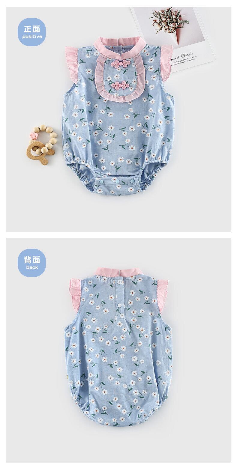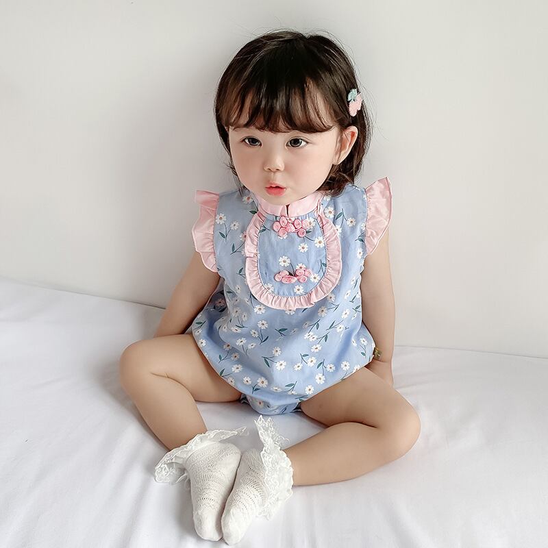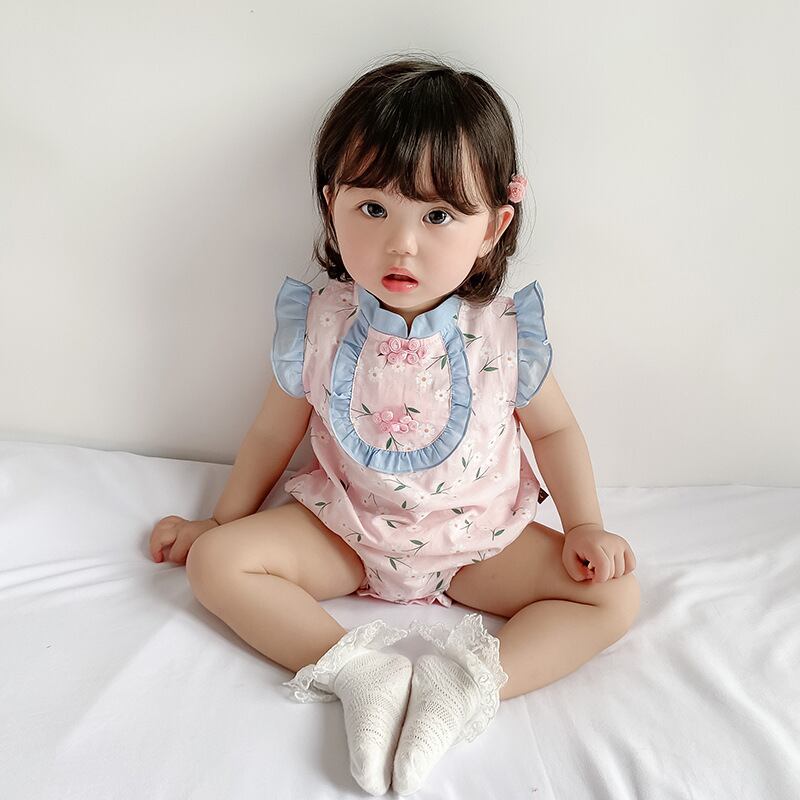 サマーレッドスタイルワンピースフローラルトライアングルロンパース オールインワン 薄手 コットン 夏物 花柄 4/24 mi0973986557392 | Sagittarius By Constellation -KIDS&BABY-