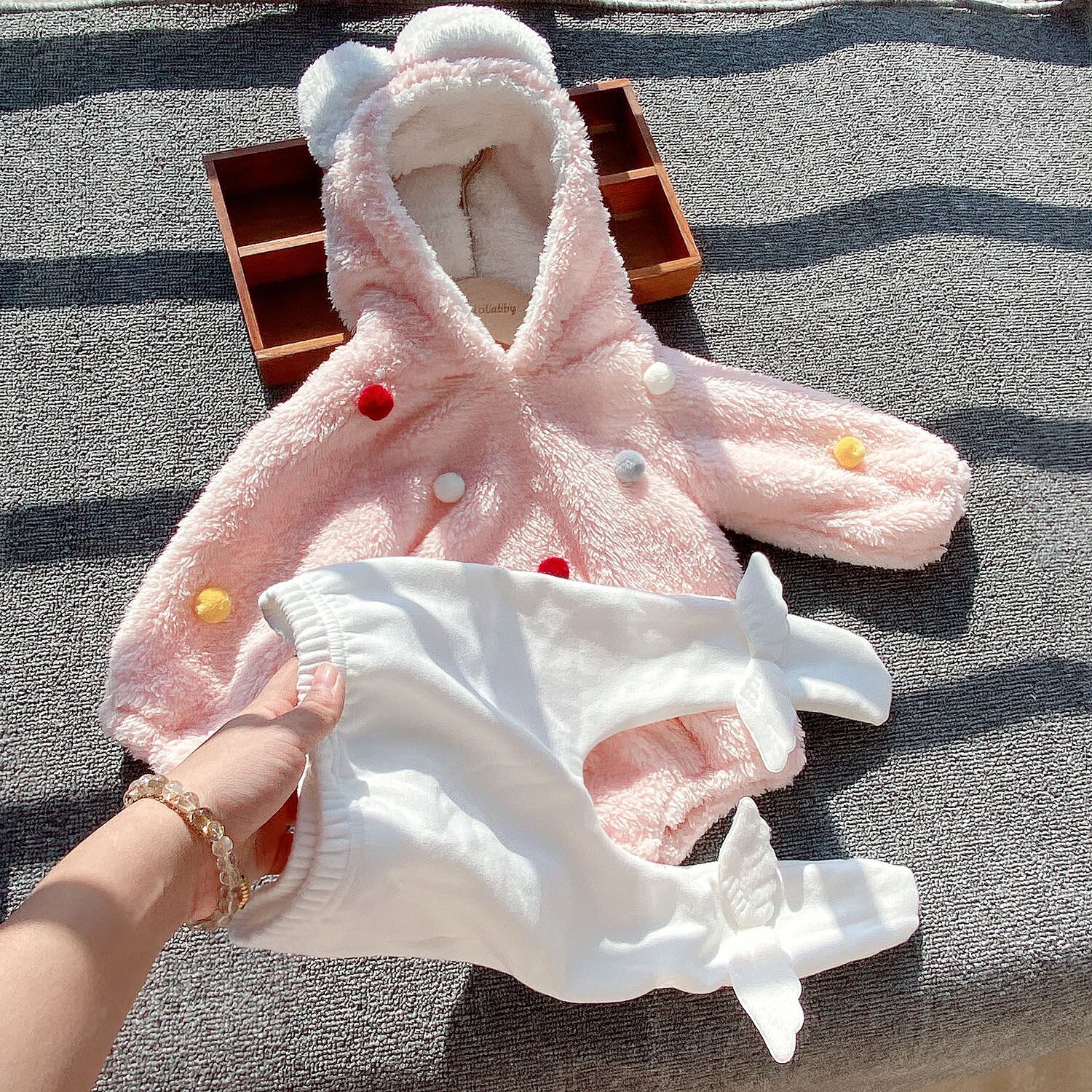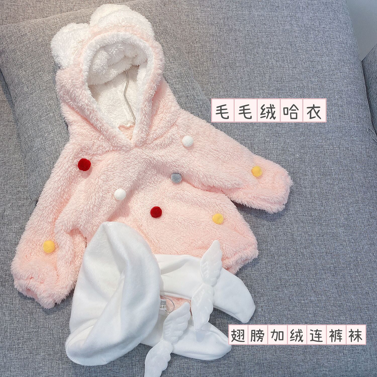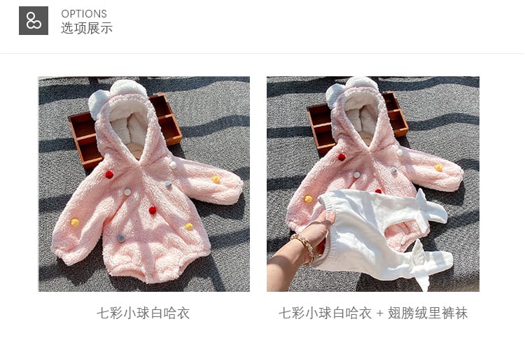 色:カラースモールヘアボールパウダーロンパース,フリースウィングのタイツ,カラースモールヘアボールホワイトロンパース