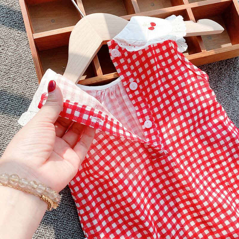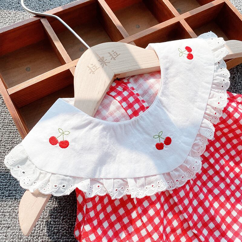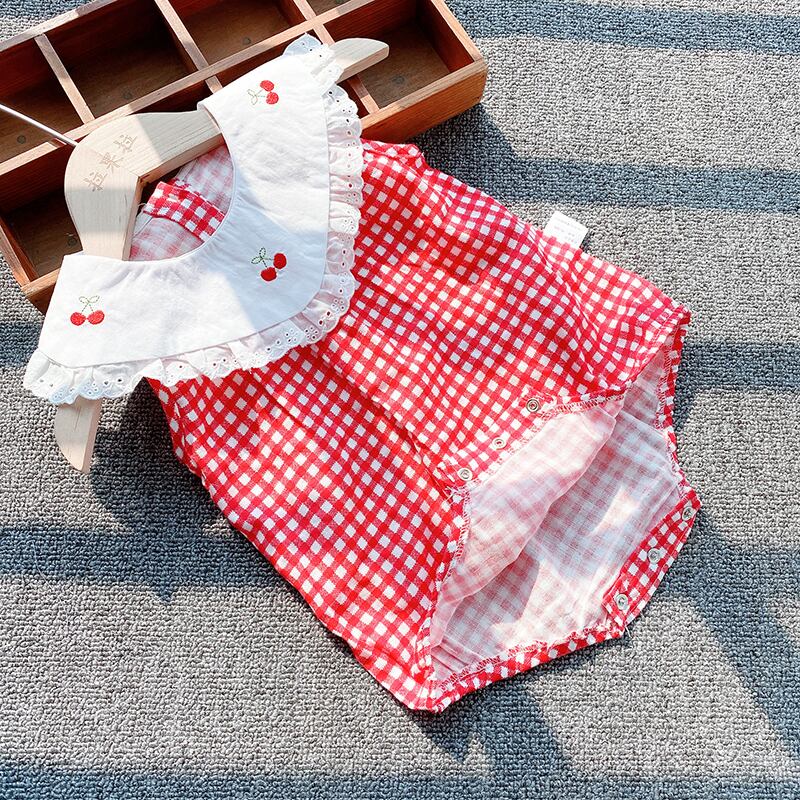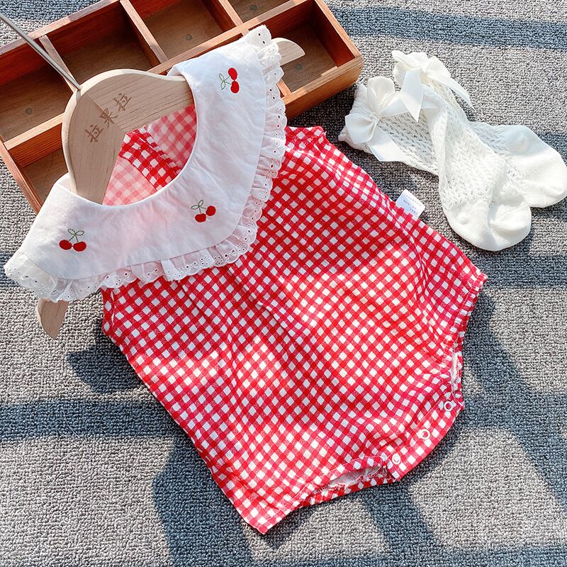 色:チェック柄チェリーロンパース2211,チェック柄チェリーロンパース+ストッキング